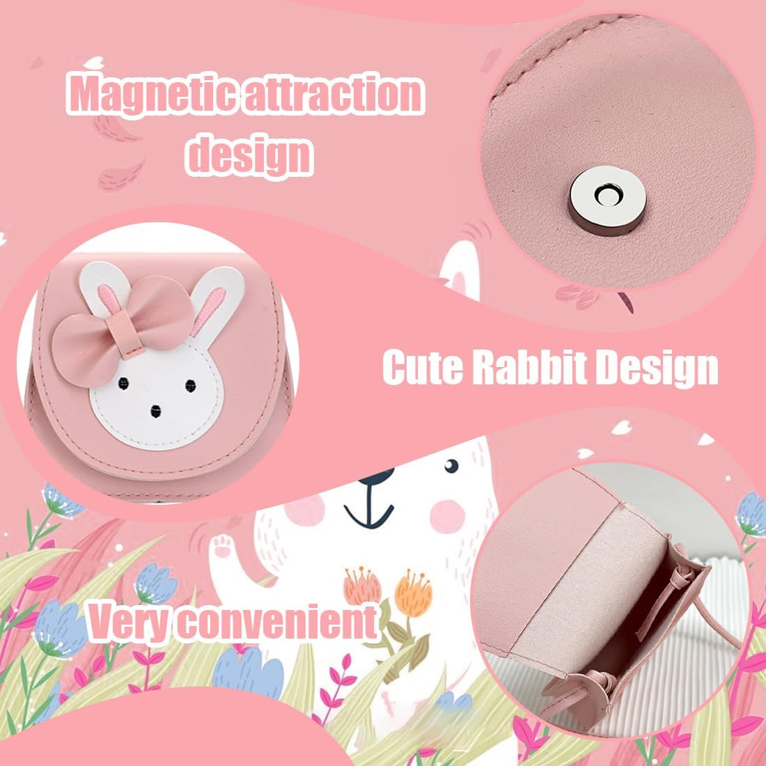 Cute rabbit shoulder bag: children’s bag designed with cartoon rabbit pattern and bow, it is a cute bag for children to carry on any occasion.