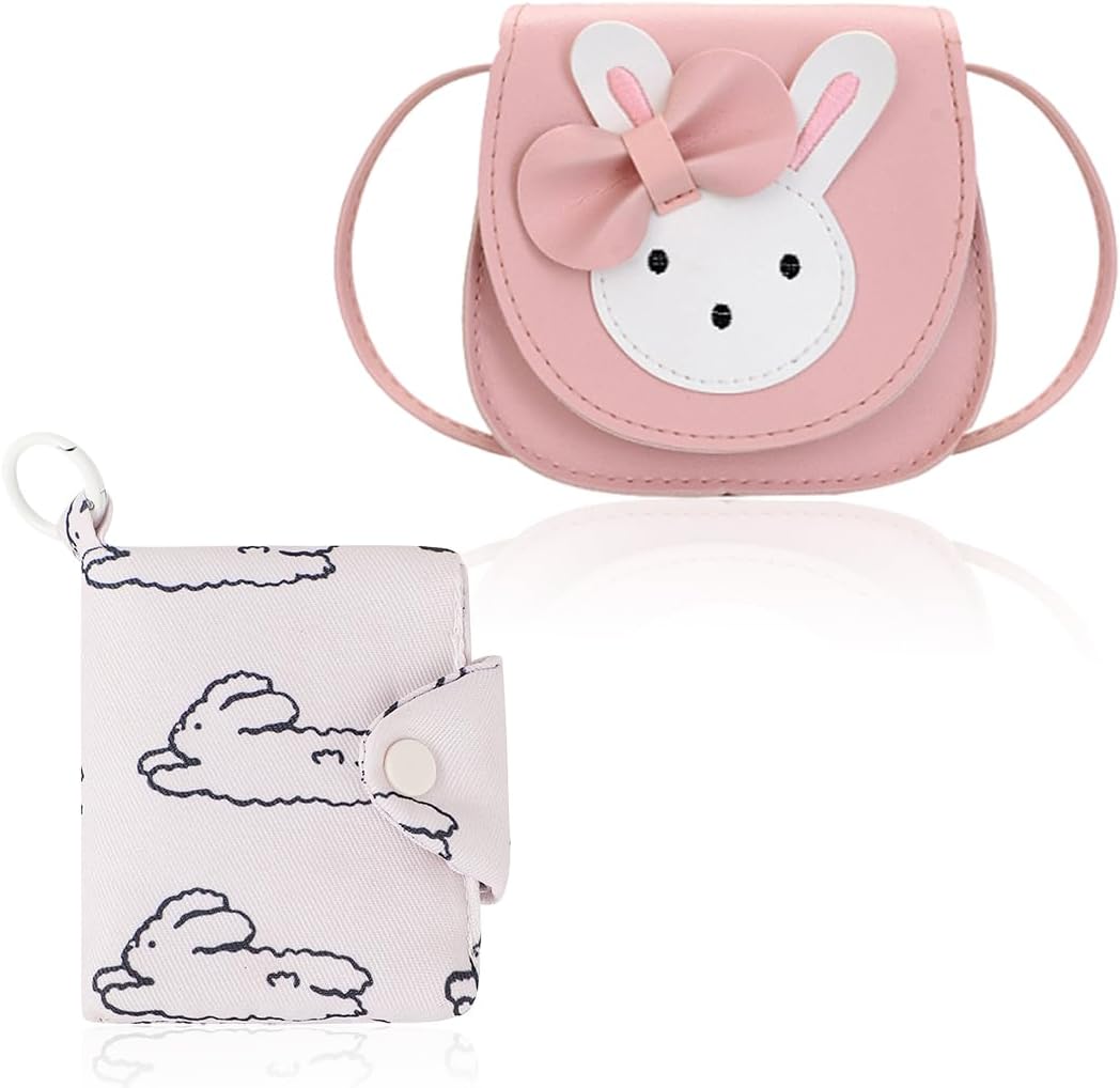 Children’s Shoulder Bag Girls with Children’s Purse, Handbag Children, Cute Rabbit CrossBody Bag, PU Leather Princess Mini Bags for Children Girls 2-10 Years (Pink)
