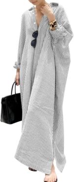 Be the first to review “chouyatou Women’s Casual Long Sleeve Button Down Loose Striped Cotton Maxi Shirt Dress” Cancel reply