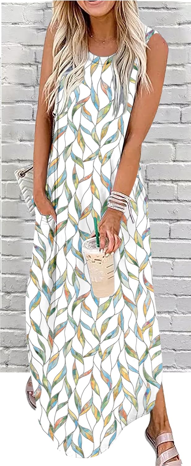 CHUNTIANRAN Women’s Maxi Dress Summer Casual Sundress Sleeveless Long Dresses Hawaiian Beach Maxi Dress with Pockets