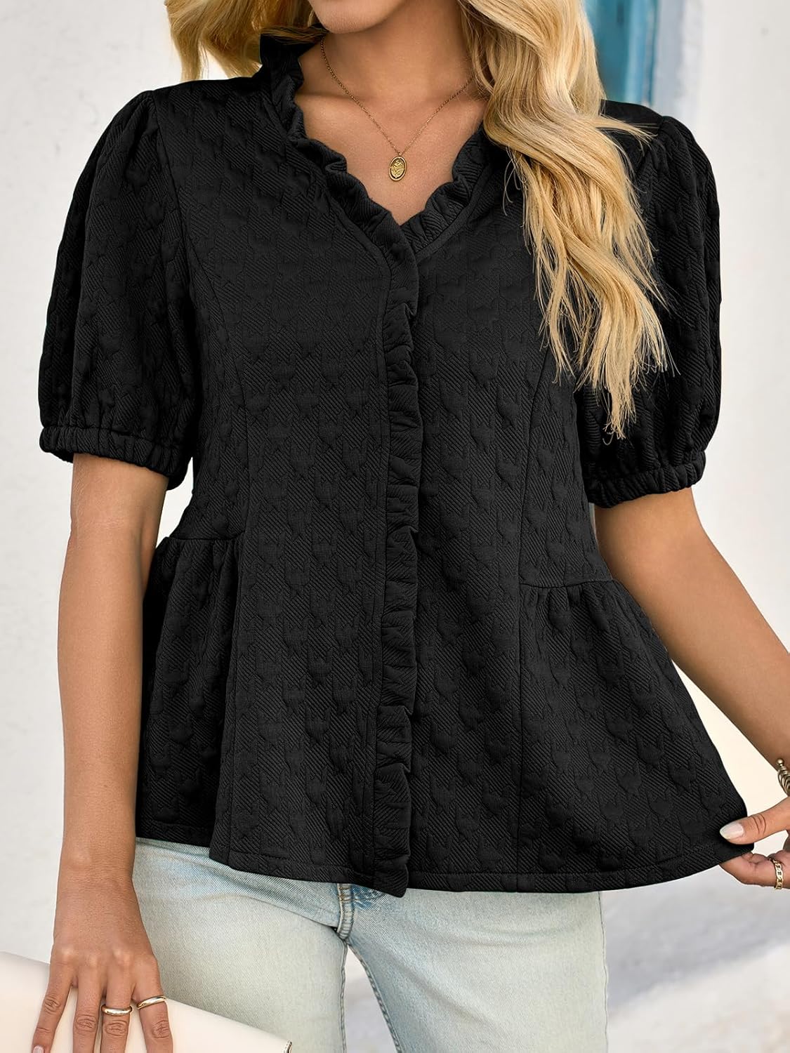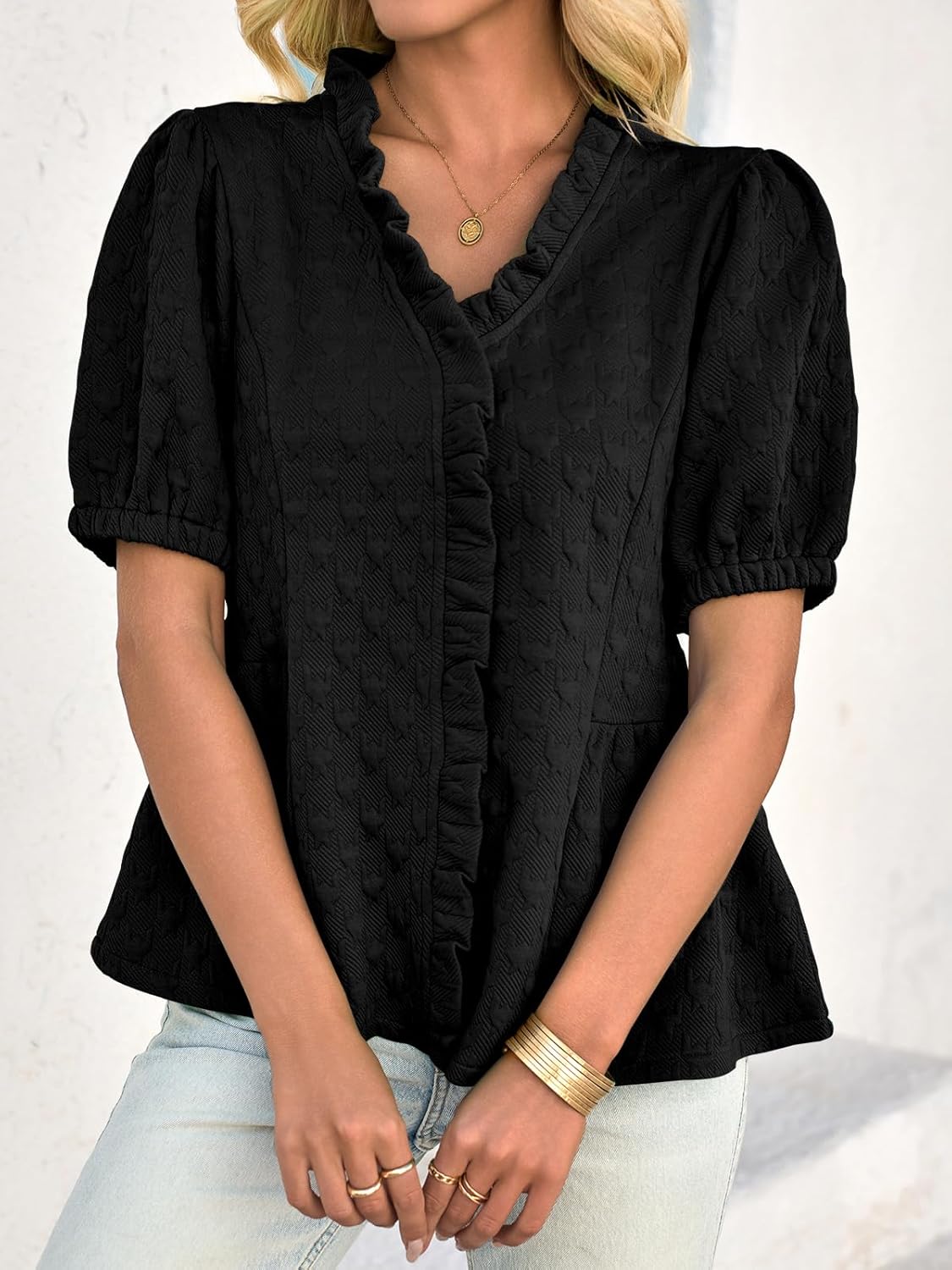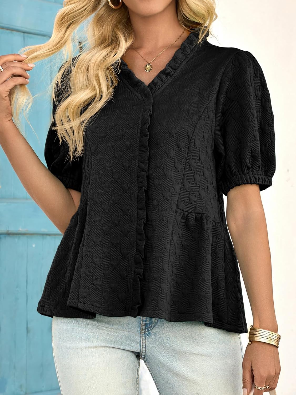 Be the first to review “Cicy Bell Womens Peplum Puff Sleeve Tops Dressy Casual Summer Textured Blouses V Neck Ruffle Pleated Shirts” Cancel reply