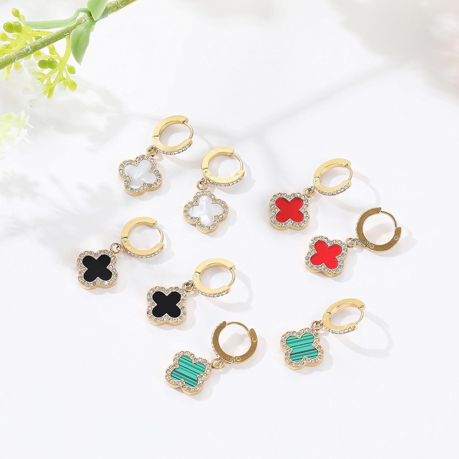 Clover Earrings for Women 18K Gold Plated Four Leaf Clover Hoop Earrings Simple Lucky Drop Jewelry Gifts for Women