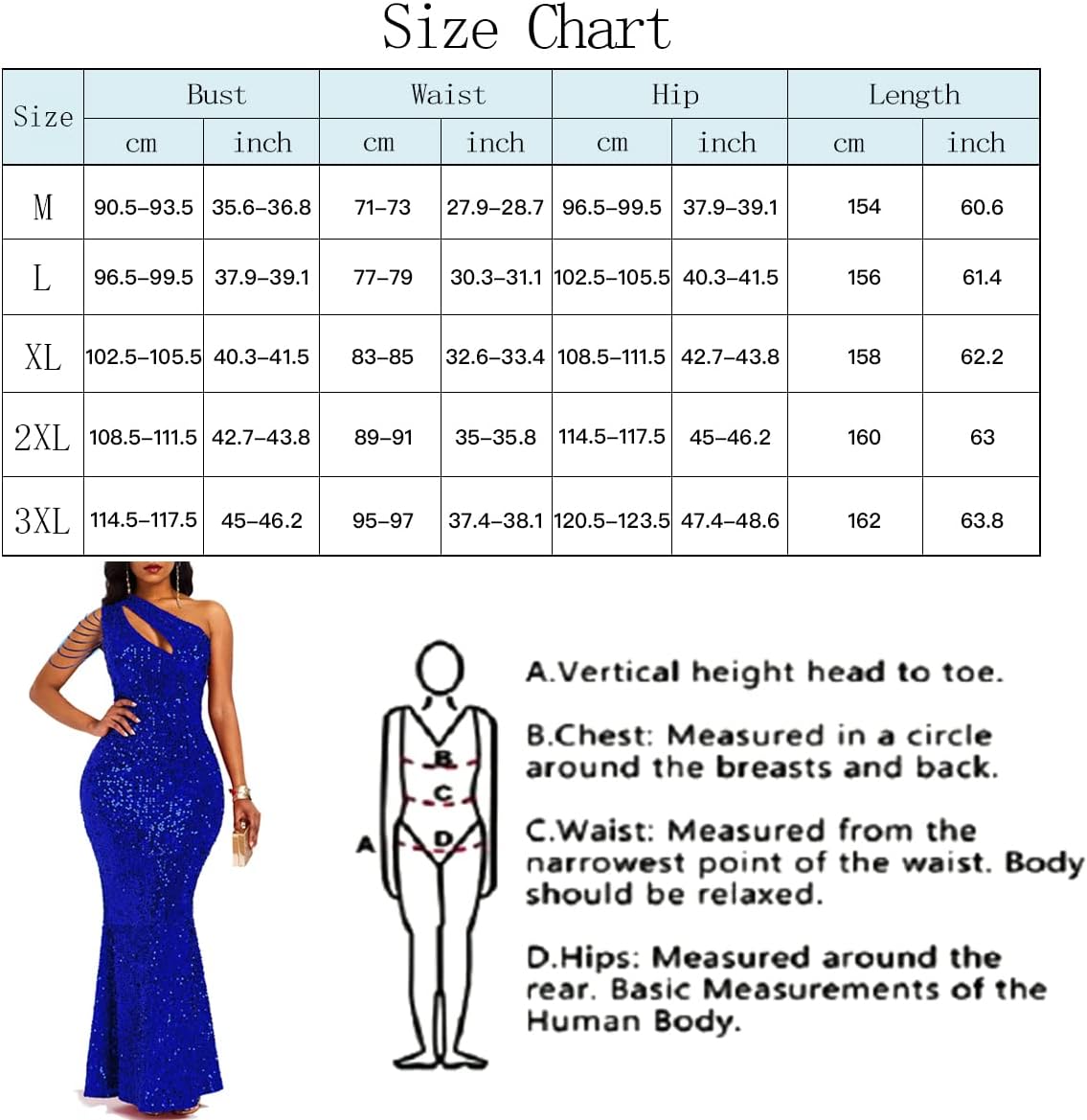 3XL(US:22-24): Dress Length: 49.6 inch/126 cm; Bust: 45-46.2 inch/114.5-117.5 m; Waist: 37.4-38.1 inch/95-97 cm; Hips: 47.4-48.6 inch/120.5-123.5 cm