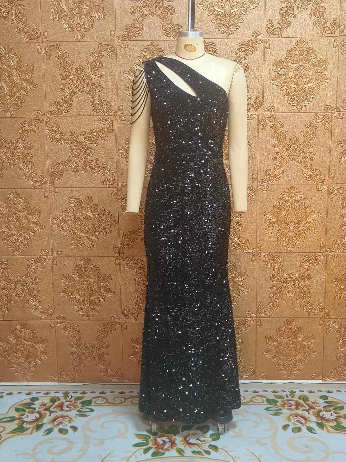 Home Jewelry & Fashion Accessories Bracelets & Rings Cololura Women Sequin Elegant Sexy One Shoulder Tassel Oblique Collar Mermaid Bodycon Cocktail Evening Dress