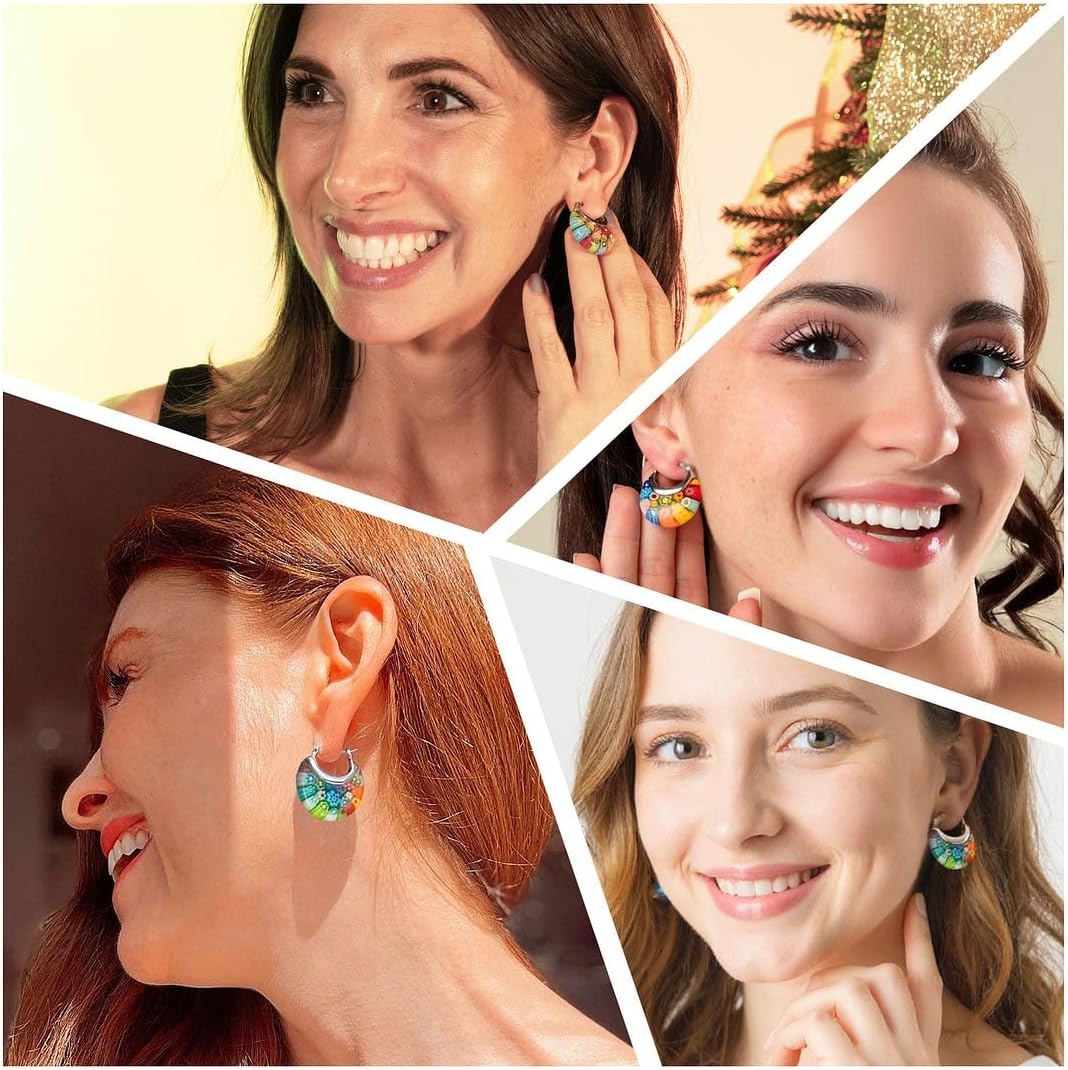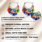 Colorful Murano Style Millefiori Glass Hoop Earrings for Women Daisy Flower Stainless Steel Jewelry Trendy Birthday Gifts for Women 11.6 Gms