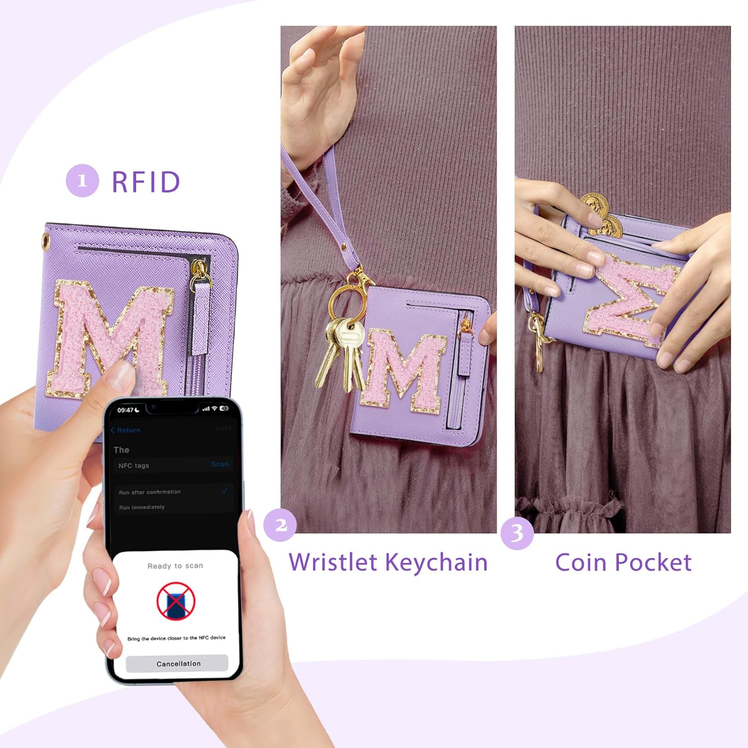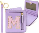 [Purple Girls Wallet made of Soft PU Leather Easy to Clean] With premium microfiber leather and bright non-fading pink color, initial wallets as top cool purple girl gifts trendy stuff.