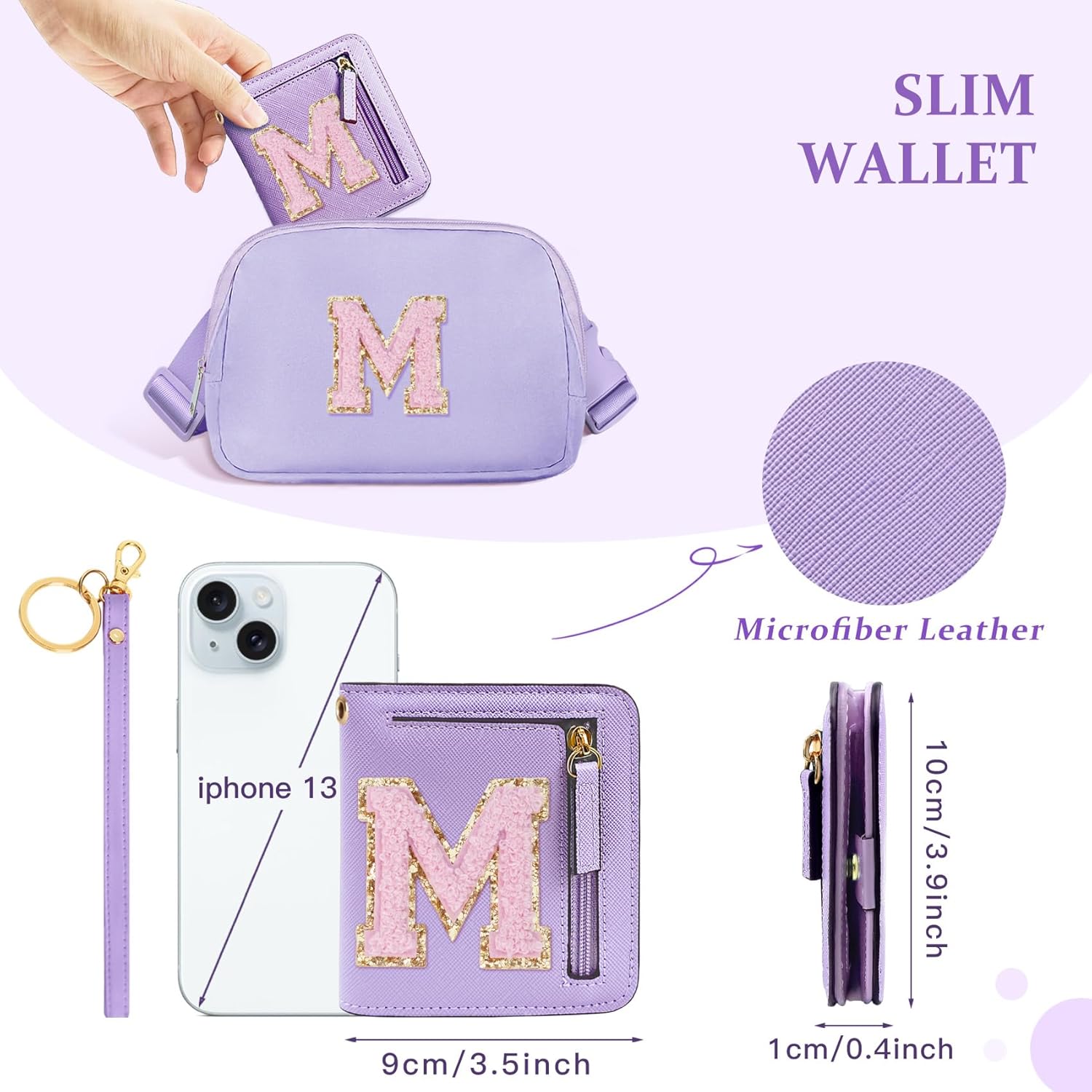 [Chenille Letter Wallet Small Bifold for Girls Initials] Purple girls wallet with monogram glitter letter patch, trending personalized gifts for 6 7 8 9 10 11 12 13 14 year old girls birthday Valentines Day Easter basket stuffers; Mothers Fathers day gifts for daughter, nurse day appreciation gift ideas, unique preteen tween teen girl gifts purple girly trendy stuff.