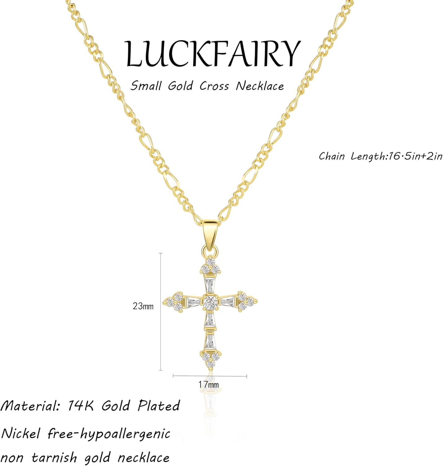 Cross Necklace for Women,Double Cross Necklace 14K Gold Plated Cross Pendant Necklace Dainty Gold Cross Necklaces for Women Trendy Small Cross Charm Necklace Simple Cute Choker Necklaces Gold Jewery