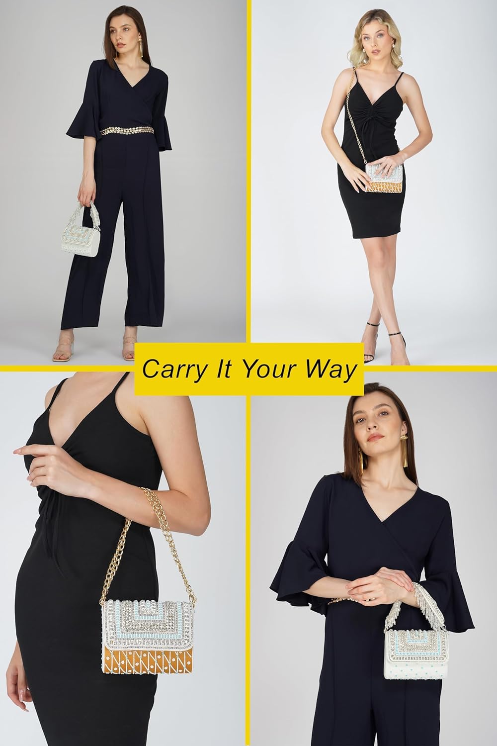 Elevate your style quotient with our exquisite collection of handcrafted party clutches for women, designed to add a glamorous touch to any ensemble. Whether you’re attending a wedding, cocktail party, or an elegant evening out, these stunning bags are the perfect accessory to complete your look. Each clutch is handcrafted with precision and adorned with intricate crystal handwork, making it a true statement piece. Featuring elegant embellishments, glitter finishes, and refined silhouettes, these bags are designed to stand out. Sunehla Deal combines artisanal beauty with everyday practicality. Designed to comfortably hold your phone, keys, cards, and makeup essentials, these clutches strike the perfect balance between form and function—adding effortless charm to your special occasions.