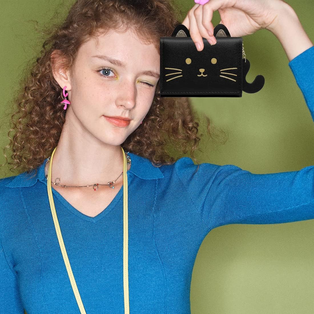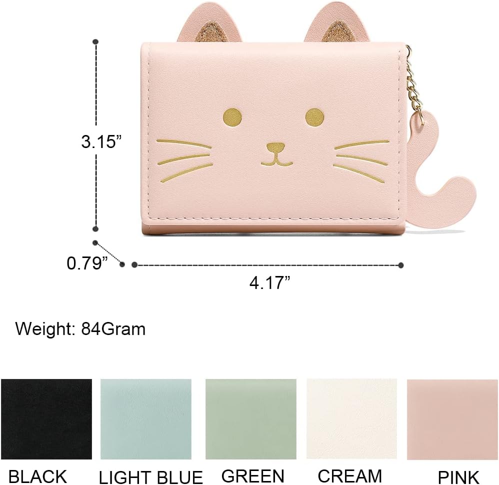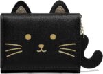 Soft and durable material: Pu Leather with cute cat emb.& patches design- animal pattern small credit card cash wallet. 3D ears and whiskers, flap and snap closure.
