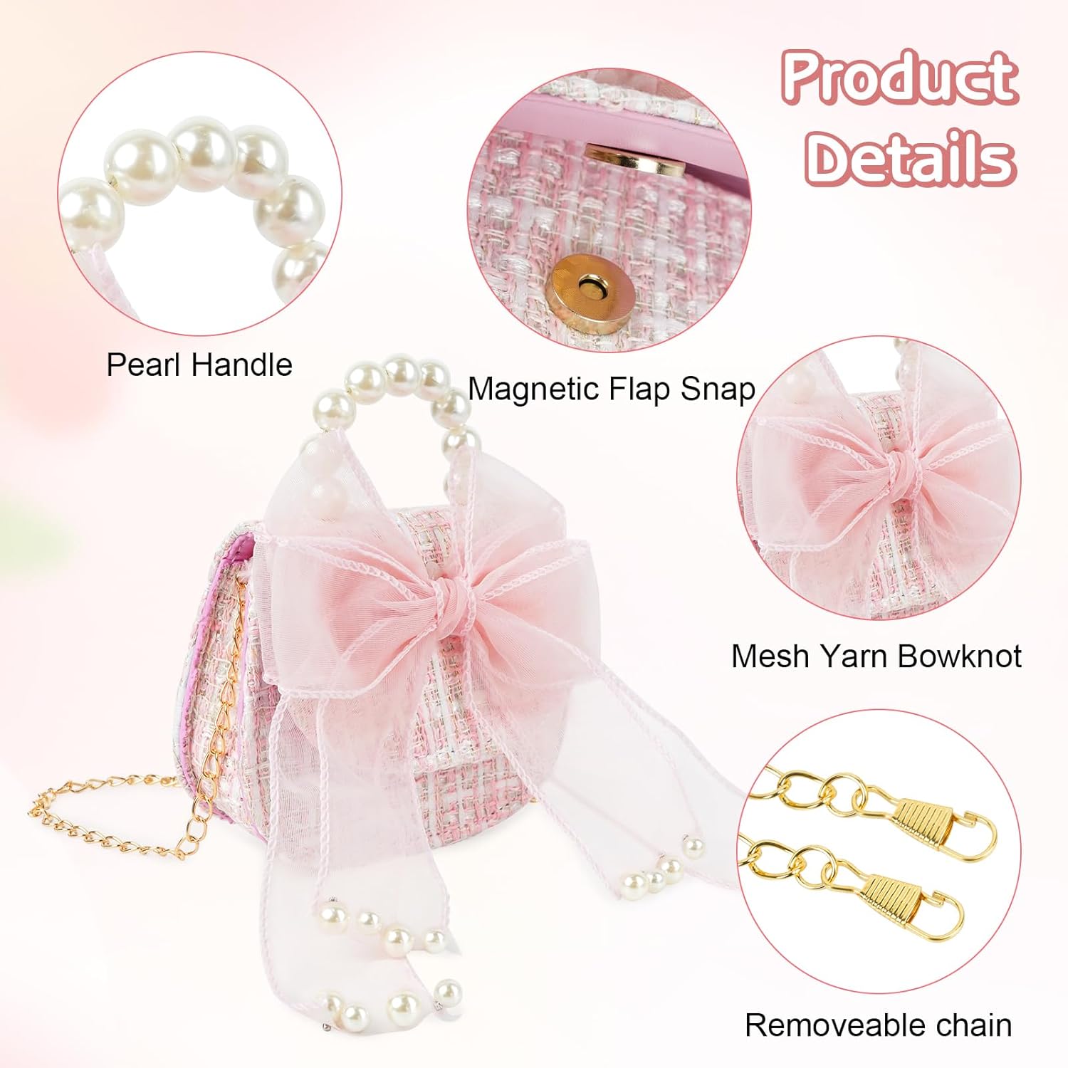 Cute Crossboby Purse with Bowknot Shoulder Bag for Little Girls, Girls Kids Fashion Handbags with Pearl Handle