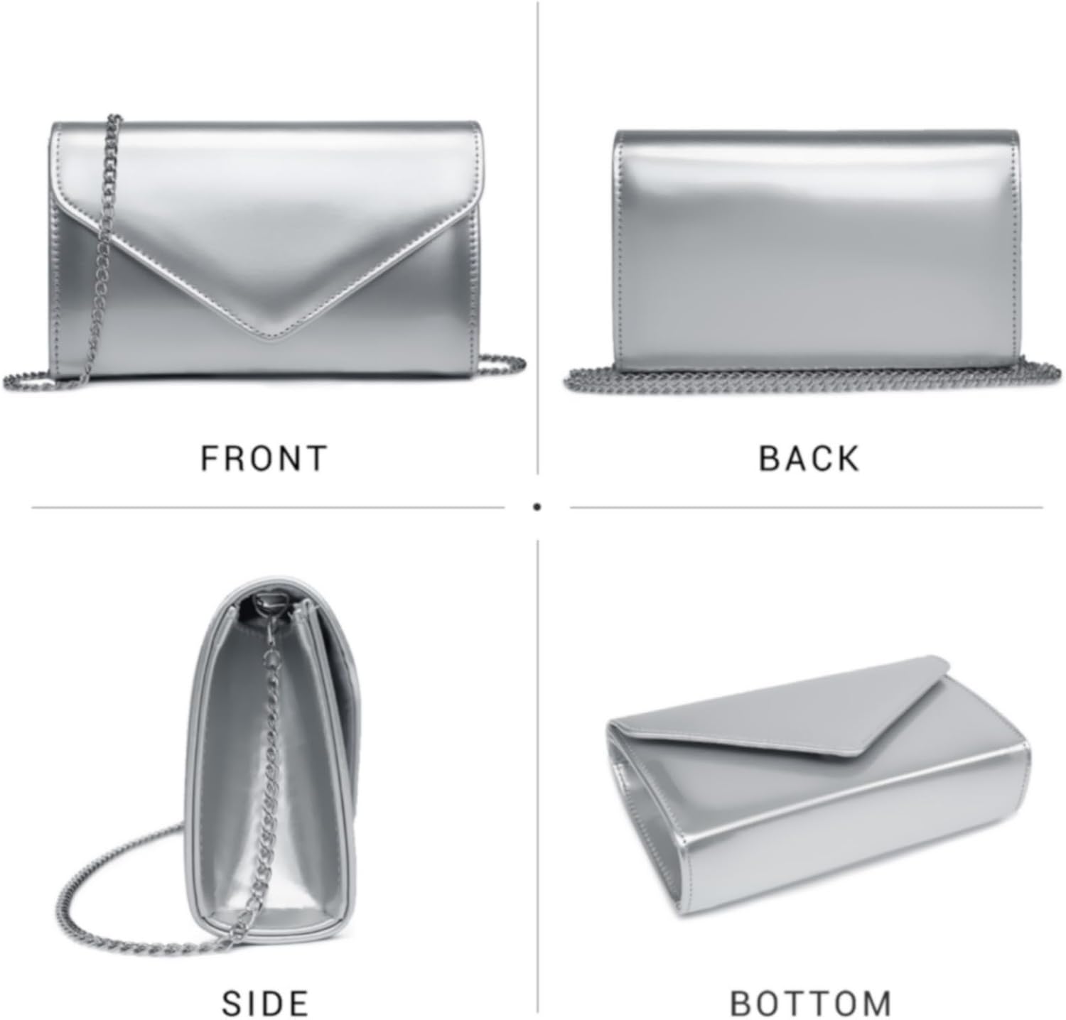 Dasein Women Glistening Evening Clutch Bags Formal Party Clutches Wedding Purses Cocktail Prom Clutches, 1-patent Leather Silver, Clutch Purse
