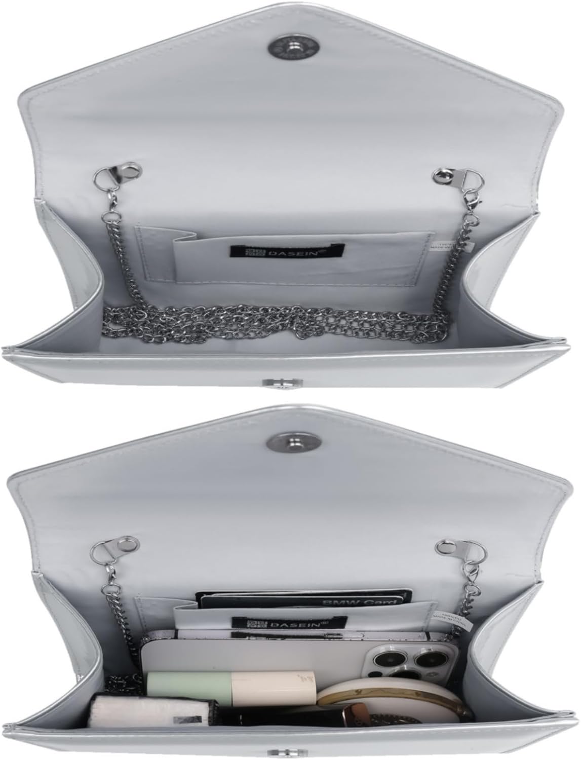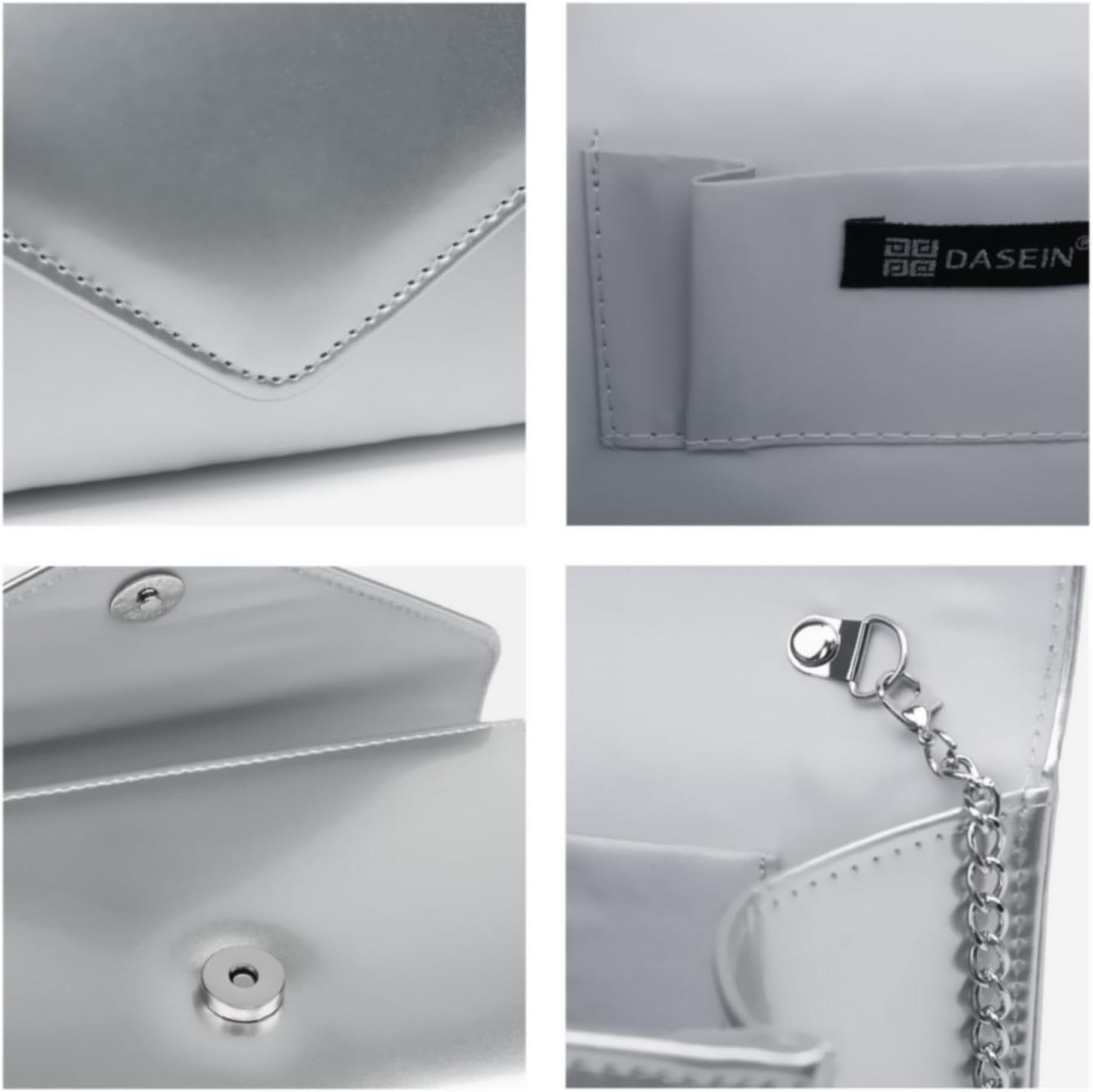 Home Bags & Accessories Clutches Dasein Women Glistening Evening Clutch Bags Formal Party Clutches Wedding Purses Cocktail Prom Clutches, 1-patent Leather Silver, Clutch Purse
