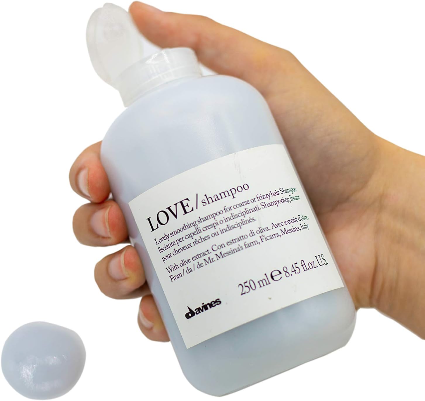 For frizzy or unruly hair. Creamy, softly-foamy LOVE shampoo with Olive extract from Messina, Italy gently cleanses and moisturizes while thoroughly smoothing hair. Winner of Allure’s 2011 and 2014 Best of Beauty Awards & the Coveter’s Luxury Beauty Awards: Best in Hair. Ingredient: WATER, DISODIUM LAURETH SULFOSUCCINATE, GLYCERIN, SODIUM COCOYL ISETHIONATE, SODIUM LAUROYL METHYL ISETHIONATE, COCOMIDOPROPYL BETAINE, SODIUM LAUROYL SULFOACETATE, COCO-GLUCOSIDE, GLYCERYL OLEATE, FRAGRANCE, PANTHENOL, PHENETHYL BENZOATE, ACRYLATES/C10-30 ALKYL ACRYLATE CROSSPOLYMER, BENZYL ALCOHOL, DICAPRYLYL ETHER, GLYCOL DISTERATE, SODIUM METHYL 2-SULFOLAURATE, SODIUM BENZOATE, LAURYL ALCOHOL, POLYQUARTERNIUM-7, GUAR HYDROXYPROPYLTRIMONIUM CHLORIDE, AMODIMETHICONE/SILSESQUIXANE COPOLYMER, DISODIUM EDTA, TRISODIUM ETHYLENEDIAMINE DISUCCINATE, DISODIUM 2-SULFOLAURATE, OLEA EUROPAEA (OLIVE) FRUIT EXTRACT, CITRIC ACID, TRIDECETH-5, GLYCERYL STEARATE, SODIUM HYDROXIDE, SODIUM CHLORIDE, LIMONENE, C1 60730 / EXT. VIOLET 2, C1 19140 / YELLOW 5, CI 61570 / GREEN 5. Shine, elasticity, Anti-Frizz