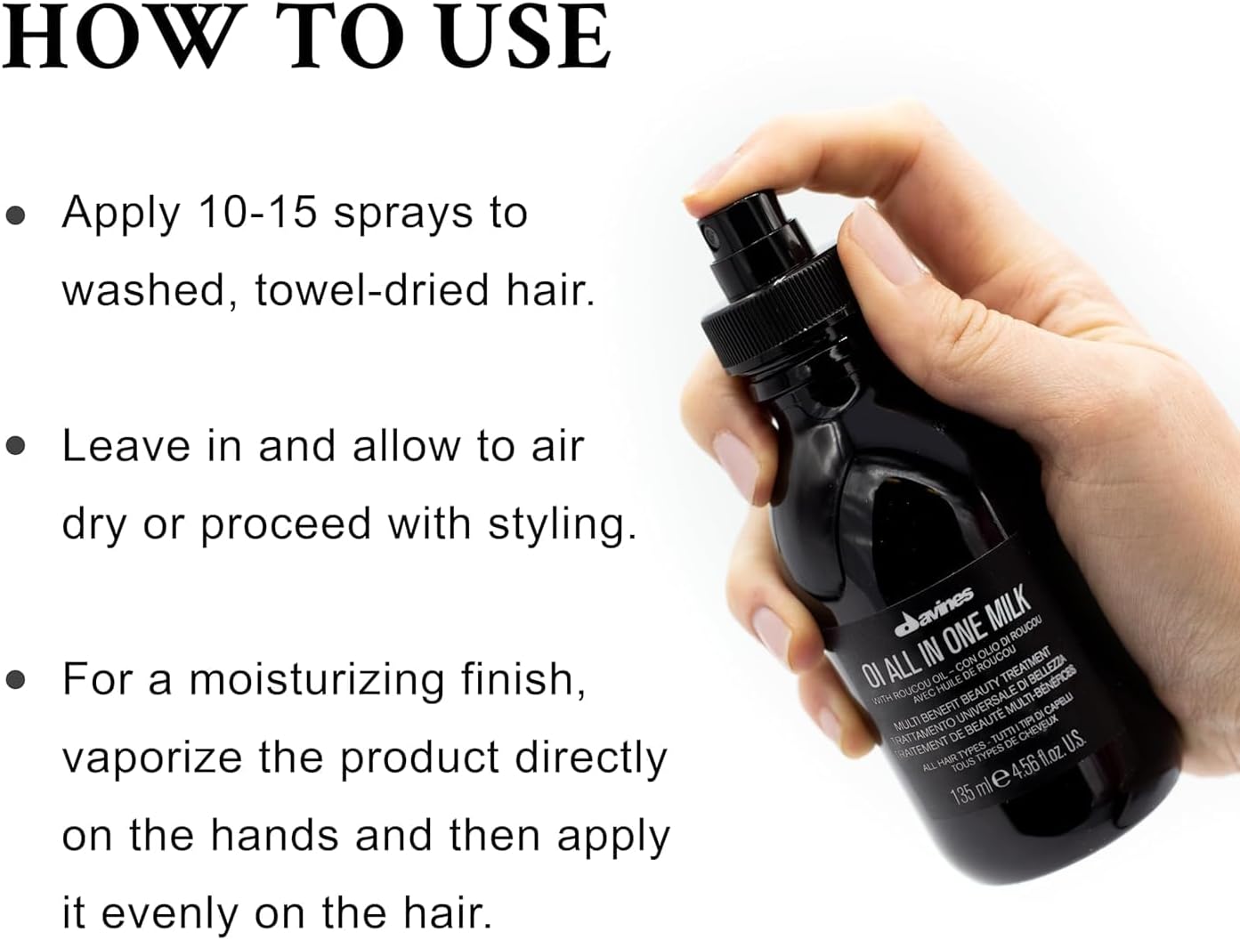 Home Beauty & Personal Care Hair Care Davines OI All in One Milk | Hair Milk Spray | Powerful Hair Detangler + Heat Protection | Smoothes Frizzy Hair | 4.56 Fl Oz