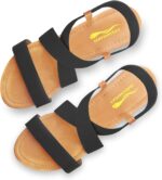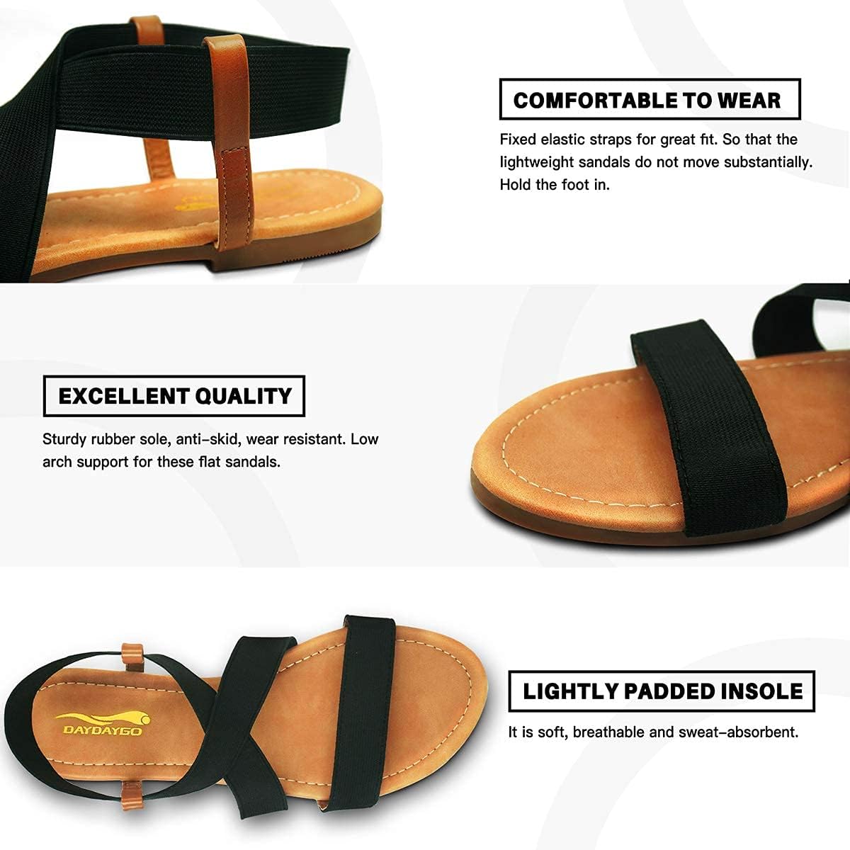DAYDAYGO Women’s Elastic Flat Sandals, Black Flat Sandals for Women, 9
