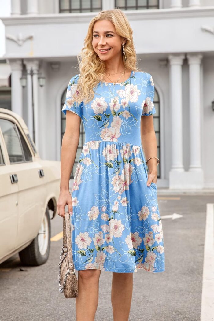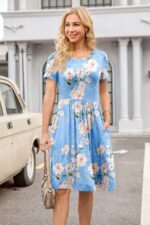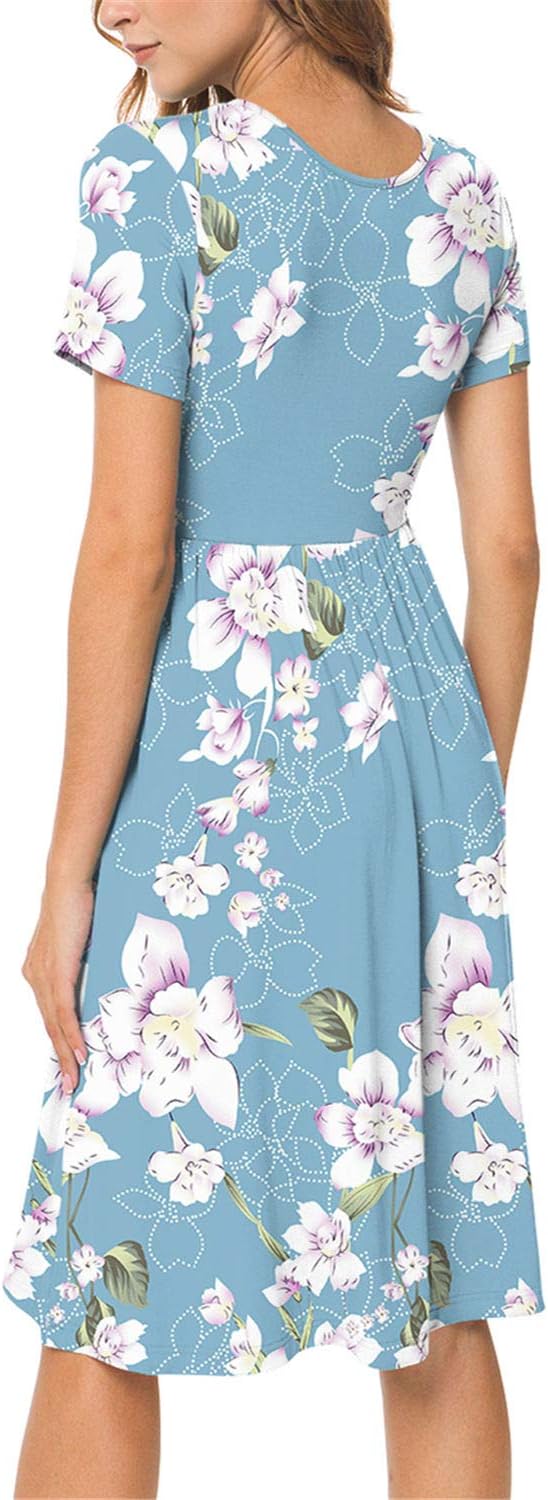 DB MOON Women Summer Casual Short Sleeve Dresses Empire Waist Dress with Pockets