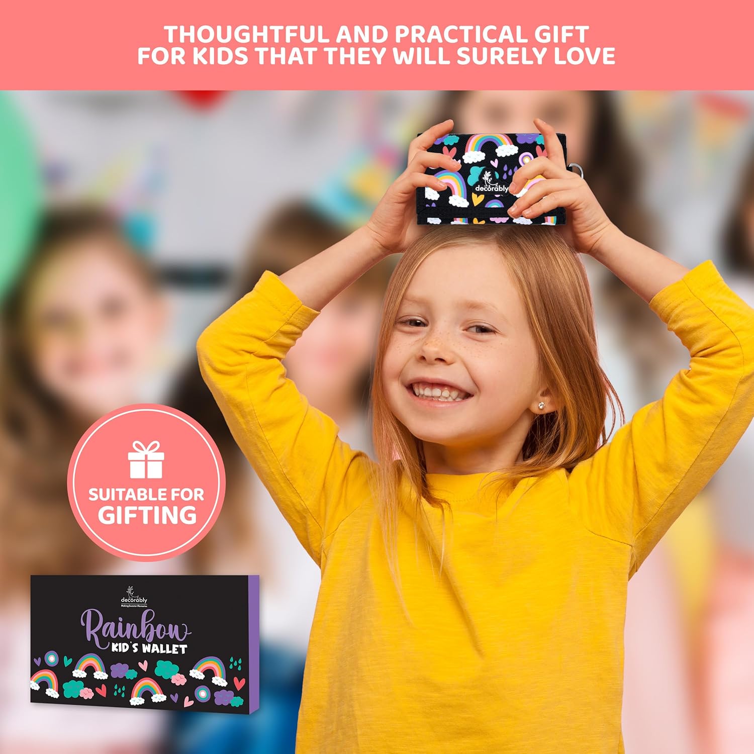 CPC-CERTIFIED FOR SAFETY – These 3.15×5.15in rainbow girls wallets for kids 6-8 features certified child-safe materials, rainbow prints, and functional compartments. Tested to be LEAD-FREE and PHTHALATES-FREE, ensuring peace of mind for parents.