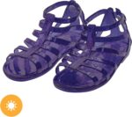Start your day under the sun right with these color-changing jelly shoes. Watch as they turn from light purple to bright purple with sunlight, then return to their original color without sunlight. Del Sol exclusive Spectrachrome™ colour changing technology gives a sunny twist to a popular retro-style shoe that pulls the hearts of anyone who had a favorite pair of jellies as a child. Sturdy yet comfortable ankle buckle jelly shoes.