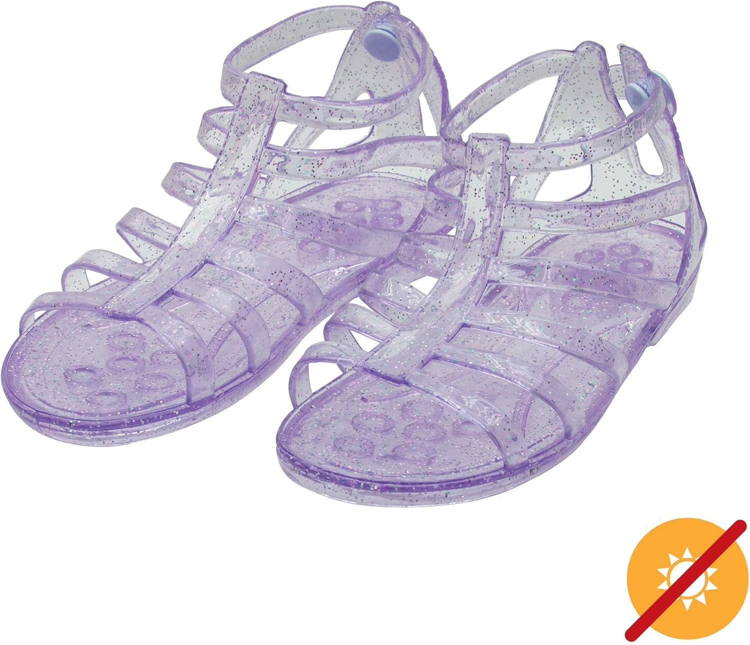 Put some sun in your gait on your next outdoor adventure. Watch as these jelly shoes magically switch from light pink to bright pink with sunlight, then return to their original color without sunlight. Del Sol exclusive Spectrachrome™ colour changing technology gives a sunny twist to a popular retro-style shoe that pulls the hearts of anyone who had a favorite pair of jellies as a child. Sturdy yet comfortable ankle buckle jelly shoes.