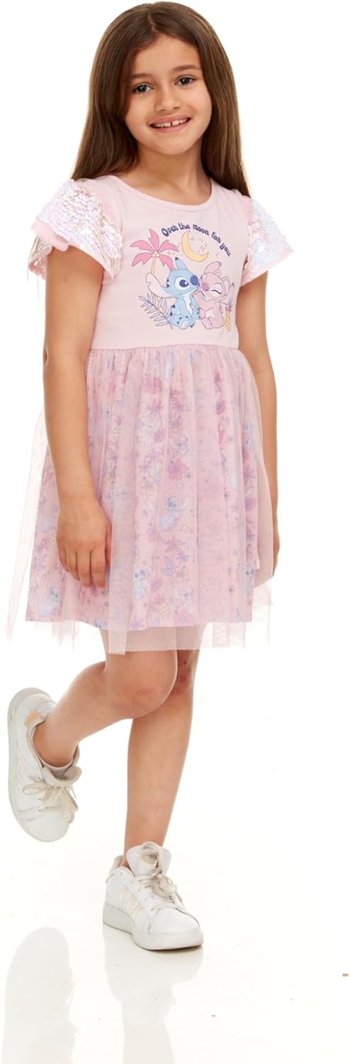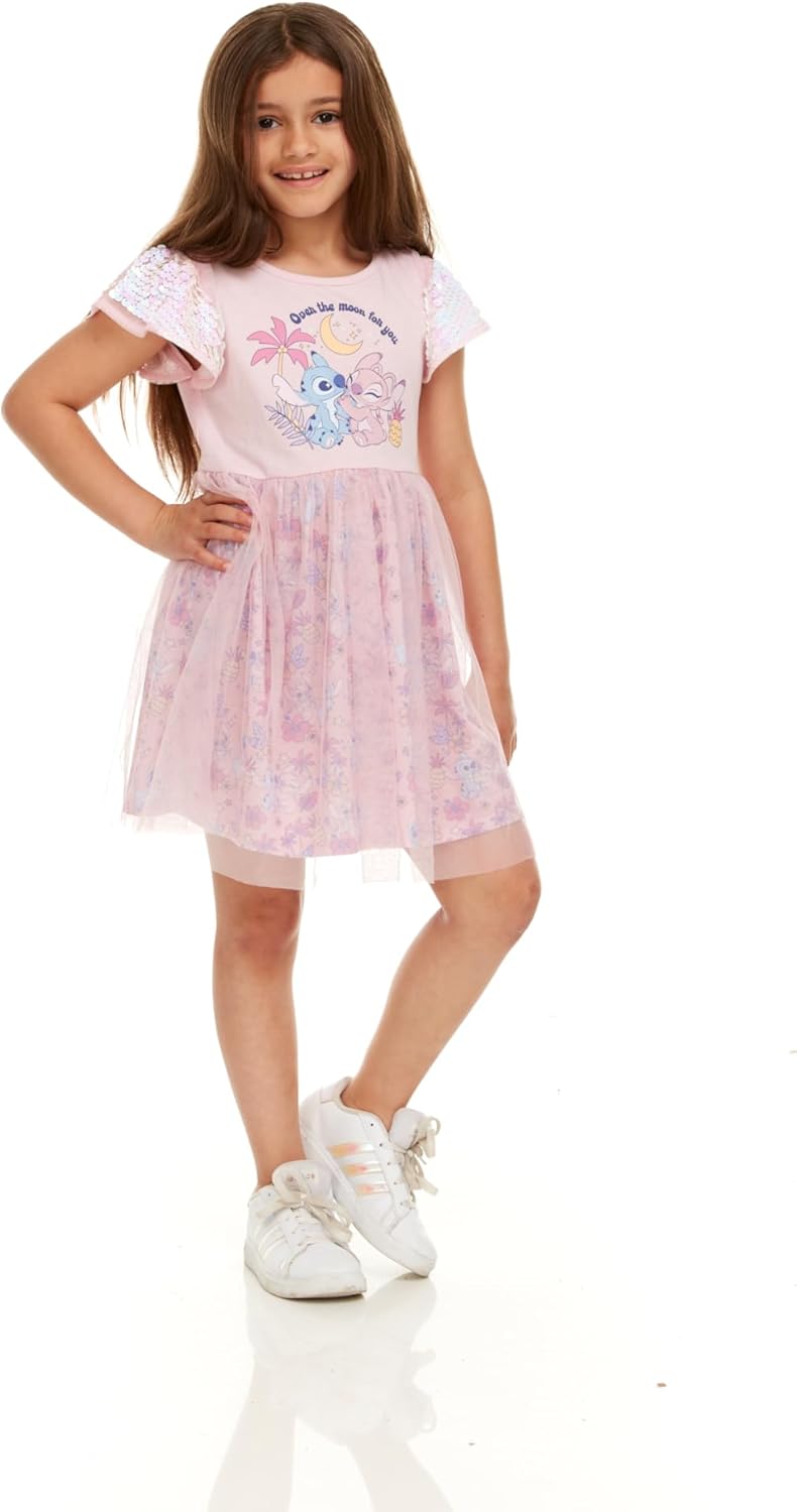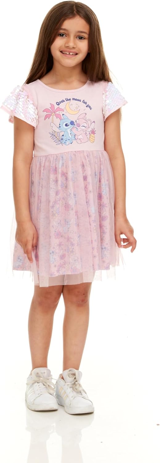 Disney Stitch & Angel Sequin Sleeve Tulle Dress-Girls Sizes 2-6x