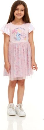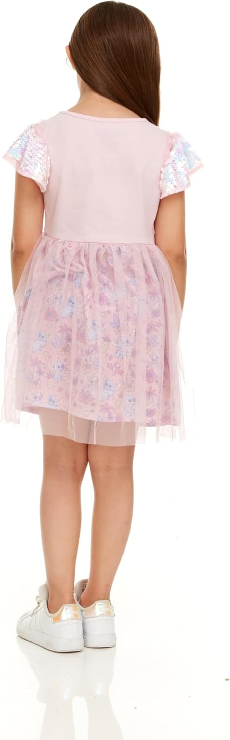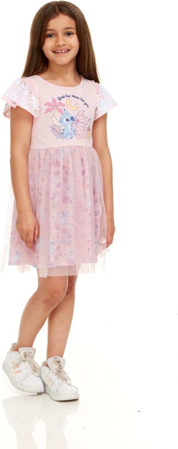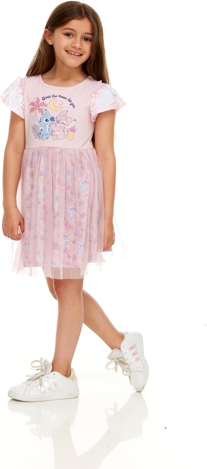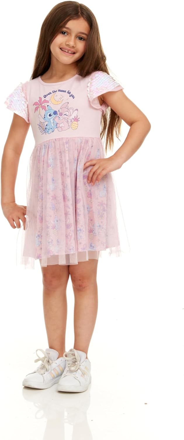 Disney Stitch & Angel Sequin Sleeve Tulle Dress-Girls Sizes 2-6x