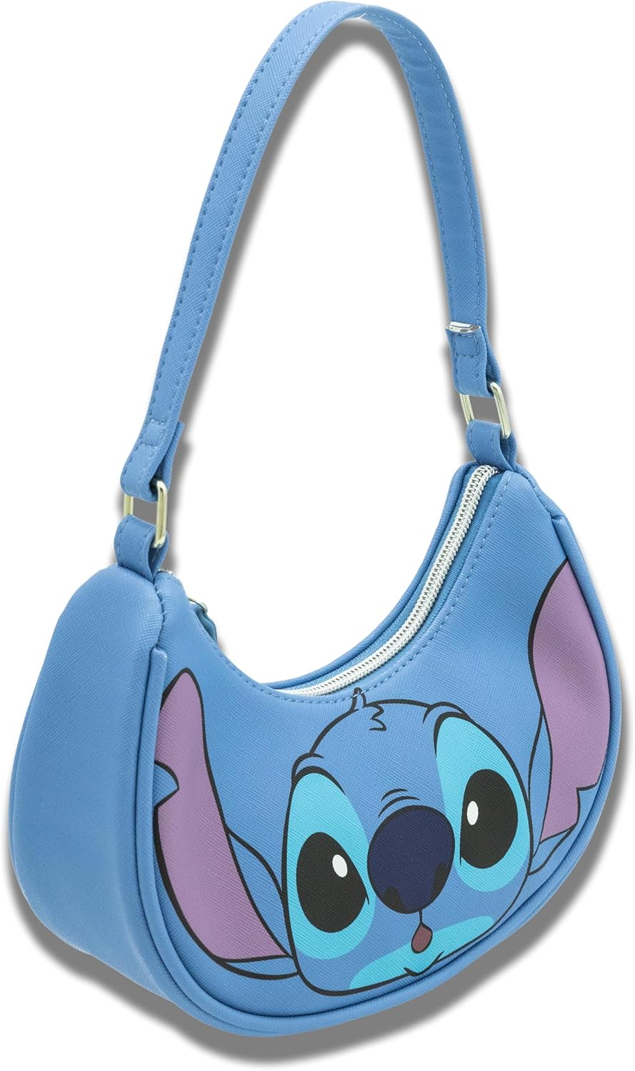 The Disney Stitch Hobo Handbag Purse for Girls is a cute and practical accessory that combines everyday function with character fun. Officially licensed and made from durable PU saffiano with metallic silver zipper hardware, it features Stitch in a playful design kids will love. Measuring 5.75″H x 7.5″W x 3″D, this handbag is lightweight yet roomy enough for snacks, crayons, toys, or other small essentials. The detachable adjustable strap (up to 26″) allows kids to wear it as a crossbody purse, shoulder handbag, or carry it as a mini hobo purse. A secure zipper closure keeps items safe while being easy for little hands to use. Perfect for preschool, daycare, vacations, theme parks, or everyday outings, this Stitch handbag works as a toddler purse, preschool crossbody purse, or small travel tote. Cute, functional, and collectible, it makes an excellent Disney gift for birthdays, holidays, or everyday adventures for Stitch fans ages 3 and up.