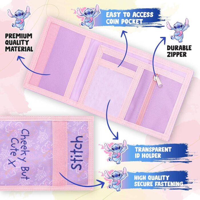 Be the first to review “Disney Stitch Wallet for Kids, Girls Small Cool Canvas Trifold with Card Holder and Coin Pouch. (Pink)” Cancel reply