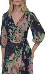 DKNY Women’s Balloon Half Sleeve Faux Wrap Midi Dress