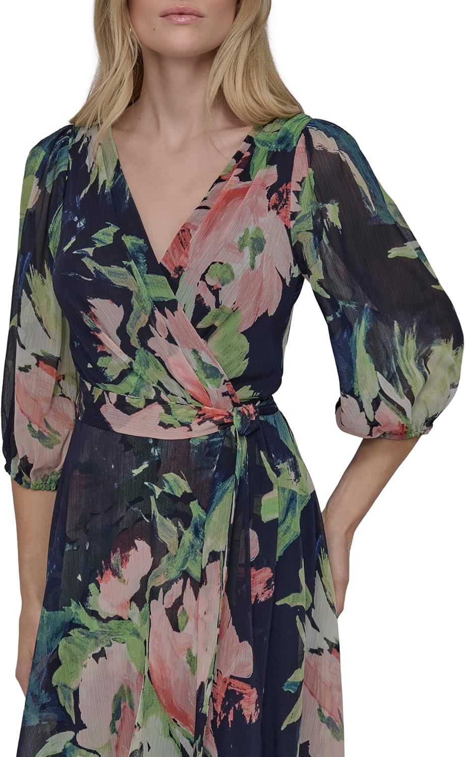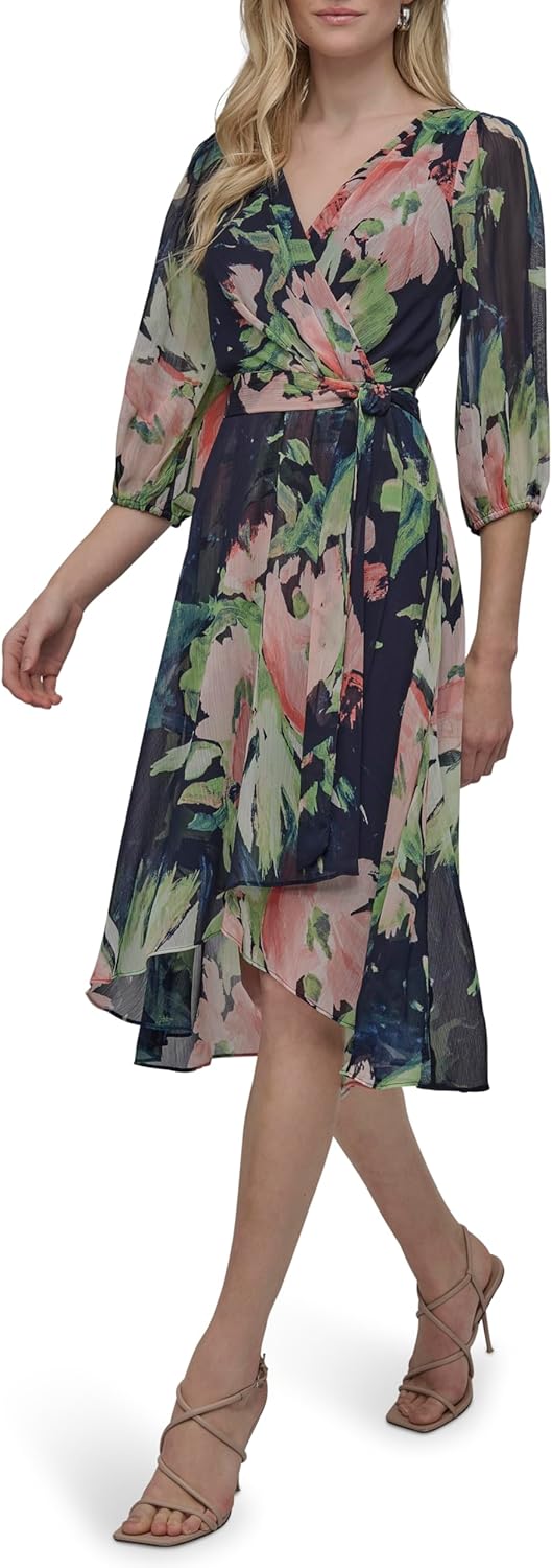 Home Jewelry & Fashion Accessories Bracelets & Rings DKNY Women’s Balloon Half Sleeve Faux Wrap Midi Dress