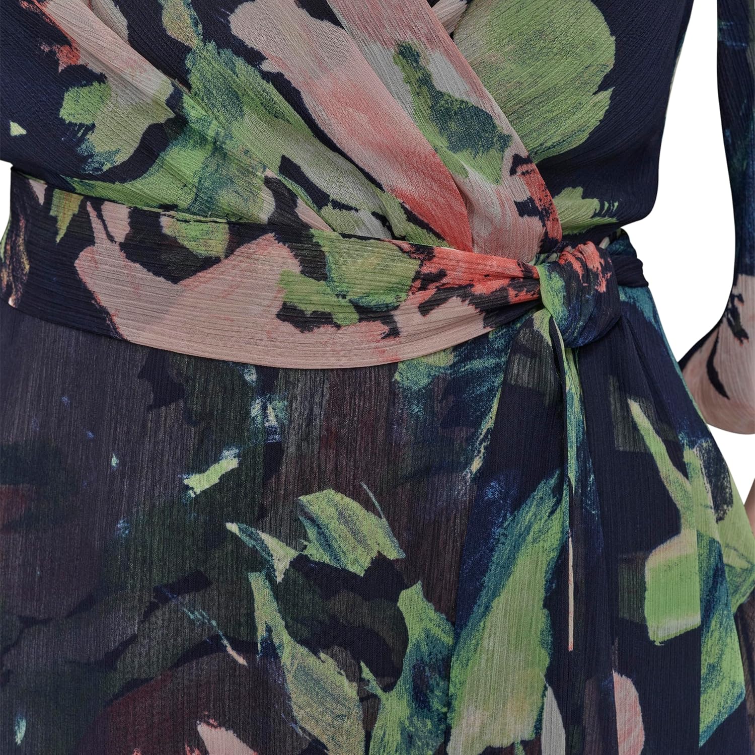 This DKNY Women’s V-neck faux wrap dress is a long sleeve chiffon midi length wear to work
