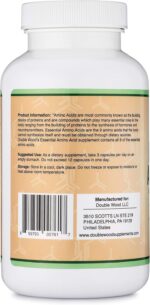 Double Wood Supplements Essential Amino Acids – 1 Gram Per Serving Powder Blend of All 9 Essential Aminos (EAA) and all Branched-Chain Aminos (BCAAs) (Leucine, Isoleucine, Valine) 225 Capsules by