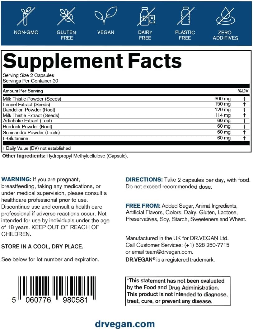 DR.VEGAN Debloat & Detox | Bloating, Digestion, Liver Support | Vitamins & Supplements | 60 Capsules – 30 Day Supply