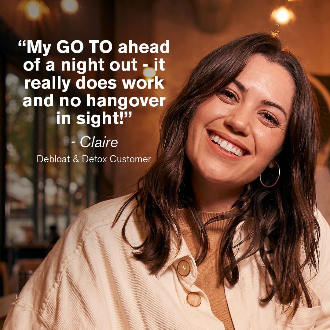 Debloat & Detox is an advanced formula of botanicals and amino-acids to relieve digestive bloating and naturally eliminate toxins from your liver and body, so can go out with confidence and wake up feeling refreshed. Including Milk Thistle, Artichoke, Burdock, and L-Glutamine, Debloat & Detox protects you from that ‘morning after’ feeling, while 85% of people enjoy relief from digestive bloating.