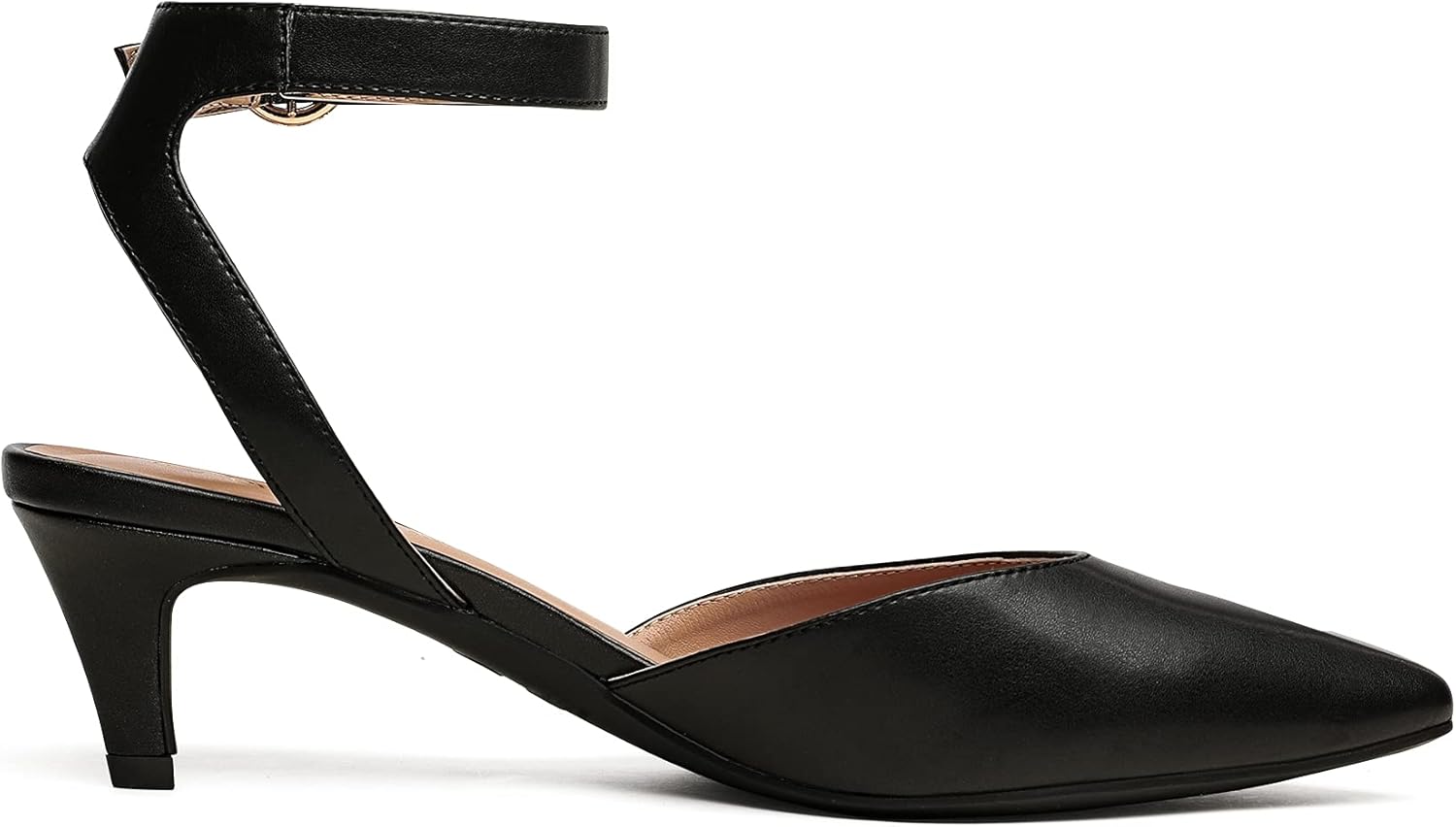 DREAM PAIRS Low Heels for Women Wedding Dress Closed Toe Pump Shoes,Classic pointed toe,ankle strap design of low kitten heel pumps,Out-standing Appearance.Pointed-toe heels are designed in smooth PU,exposed sides, and an adjustable buckled ankle strap. Finished with a stiletto heel and memory Latex padded insole for comfort.these pumps combines wedding and daily-wear elements and it is perfect for you.