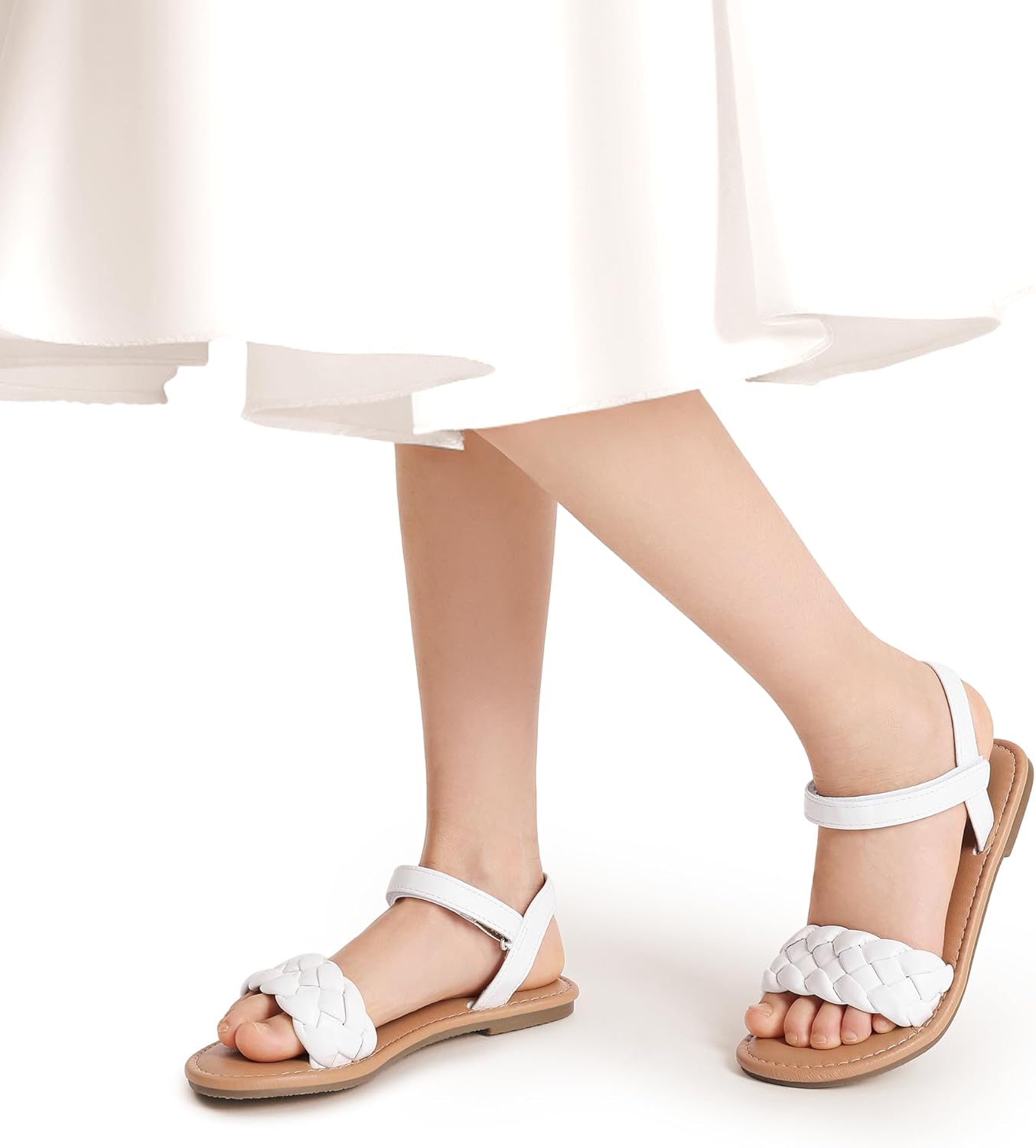 Nothing like a new pair of sandals can light up your little girl’s face. A braided toe strap brings stylish appeal to these Dream Pairs ankle-strap sandals. Theseflat sandals for girls have a breathable and cushioned latex footbed that provides your little princess with all-day comfort. A hook-and-loop strap makes it easy to put on and take off. A flexible TPR outsole brings extra stability to her summer playtime.