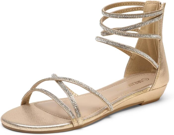 Price: (as of – Details) Add a fancy sparkle to your wordrobe with this gorgeous flat sandal! Featuring strap construction