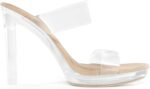 DREAM PAIRS women’s two strap open toe high clear block chunky slip on mules dress heel sandals,featuring a double band, chunky block heel, open-back slip on style, easy on and off.The thermoplastic TPR sole gives this heel a casual fit and a refined look!Latex padded insole and soft PU footbed for great support and comfort for all day wear.Put your most stylish foot forward into these comfy shoes.Pair with jeans, shorts, pants, dresses, tuxedos, and skirts of any length,you’ll be perfectly styled for any occasion.An essential summer slide sandal features double simple straps, a low-block heel and work-to-weekend-to-wherever versatility.A must-have in every womenâ€s closet!.
