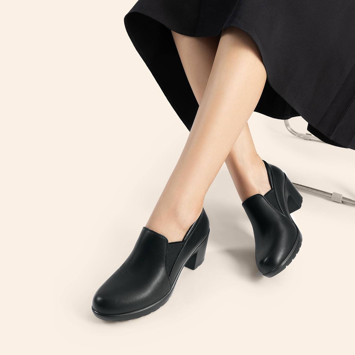 These pumps are perfect for those who stand or walk all day at work. The block heel of 6.98 cm is not too high, but a must for your professional and comfortable work wear. These pumps are easy to wear at any time of year.