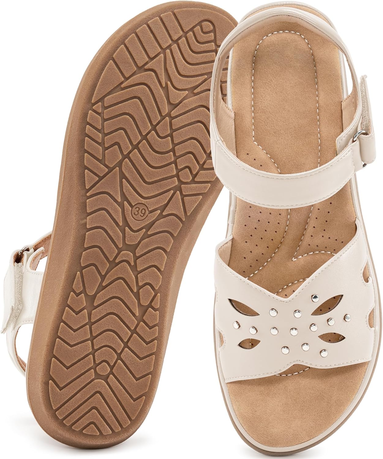 HARENCE Flat Sandals for Women: Comfortable Ankle Strap Walking Sandals Summer Outdoor Shoes for Hiking Beach Wedding