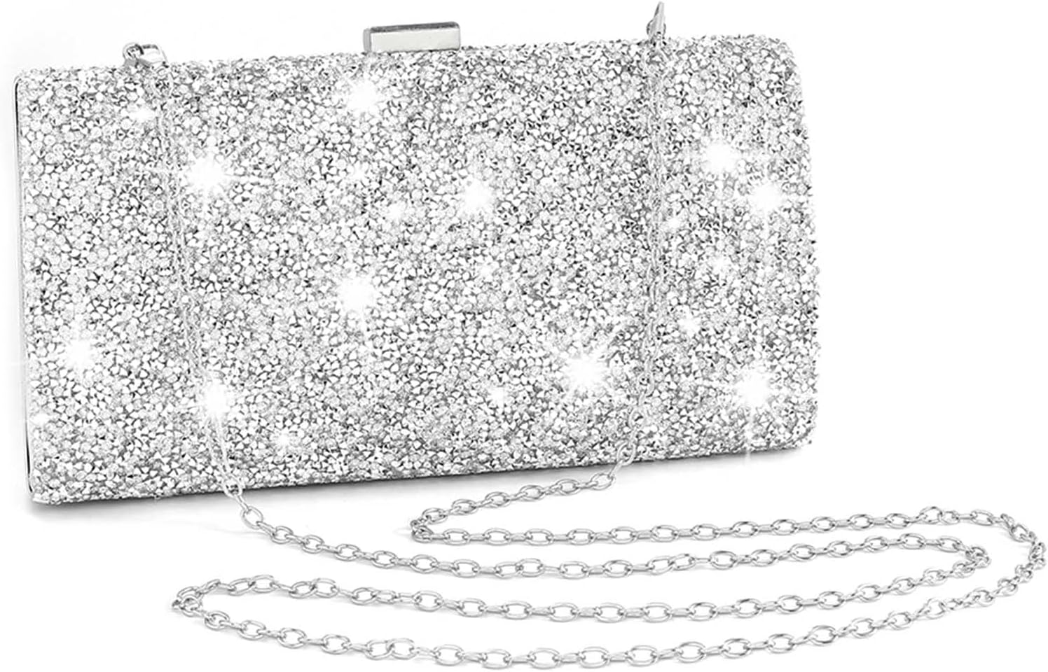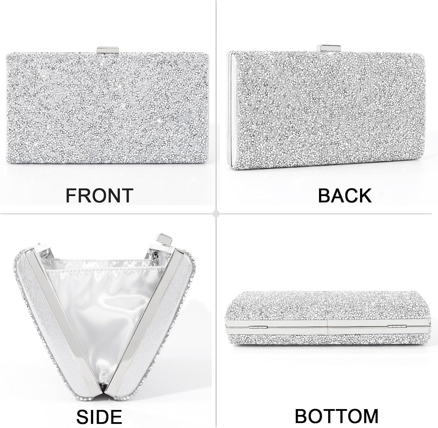 Home Bags & Accessories Clutches ELABEST Glitter Evening Clutch Bag Rhinestone Handbag Crossbody Purse Wedding Party Bag for Women and Girls, Double-sided Silver Crystal