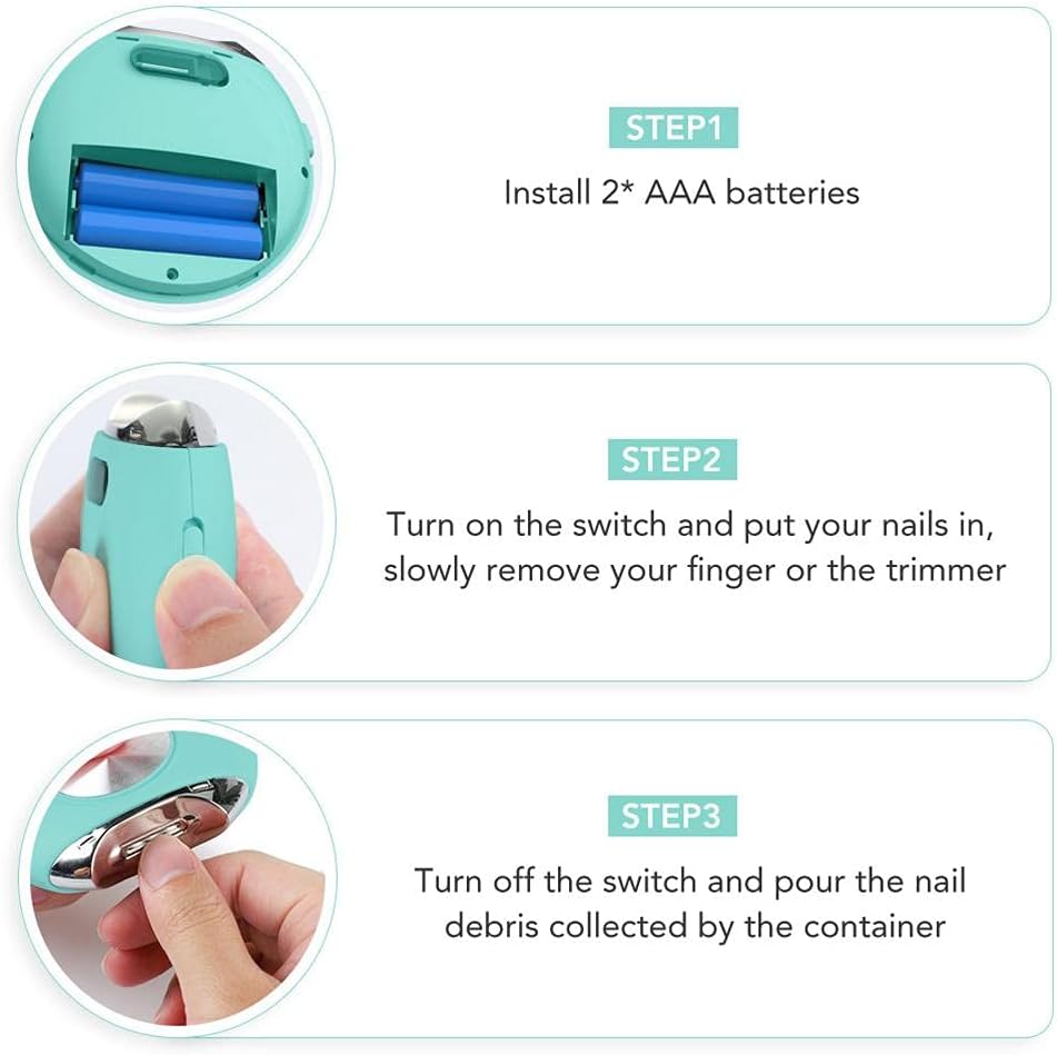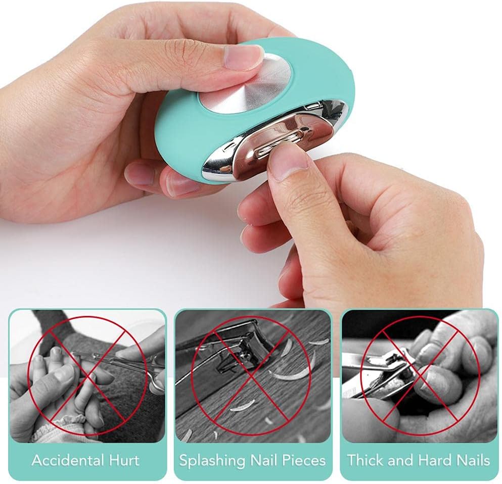 1. 1. Baby safety: Don’t worry about accidentally cutting your baby’s fingers with nail clippers. Ergonomic design, very comfortable to hold. In addition, this electric baby nail clipper is also safe. The cutter is placed behind the groove that protects the fingers. When your finger directly touches the groove, the automatic nail clippers are absolutely safe. You can even close your eyes or trim your nails in the dark. This nail clipper is good for the elderly with poor eyesight.