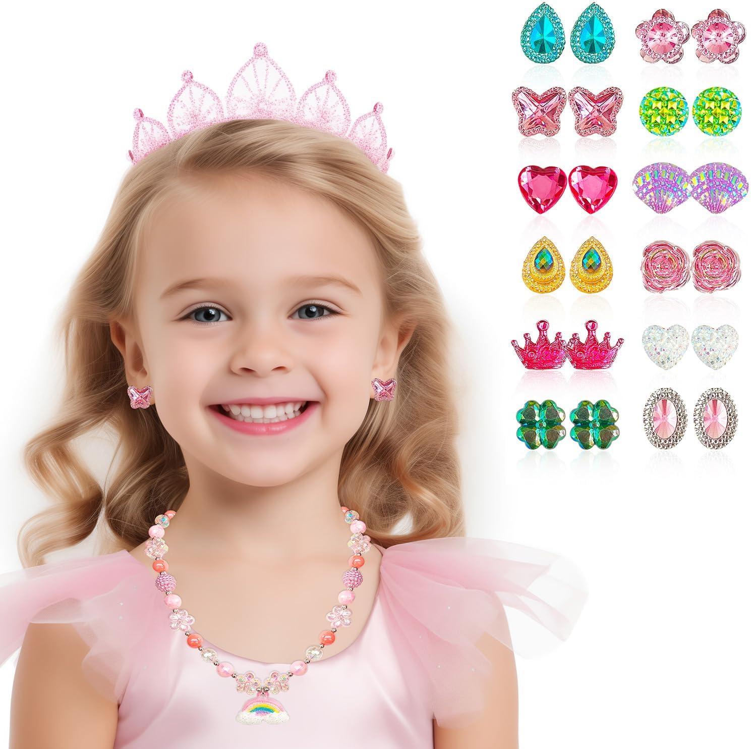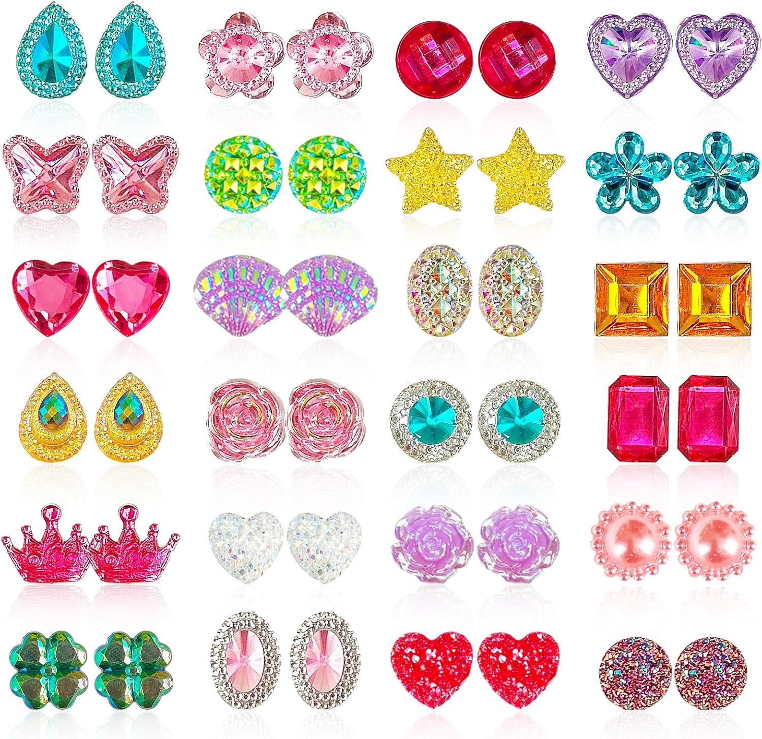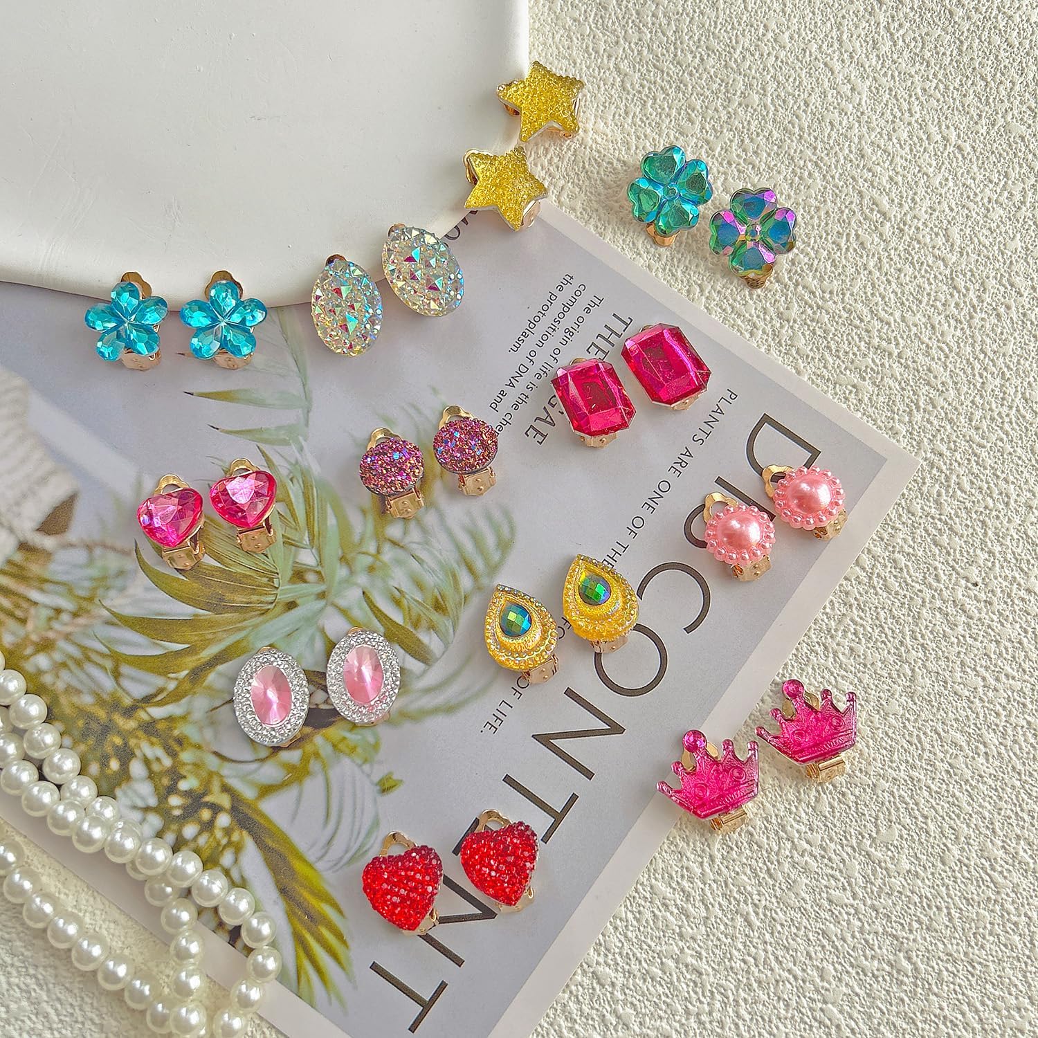Home Jewelry & Fashion Accessories Earrings EleMirsa 16/24 Pairs Clip On Earrings Little Girl Party Favor Princess Clip on Earrings Dress Up Pretend Play Earrings for Little Girl Kids Toddlers Jewelry Set
