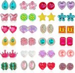 NEWITIN 30 Pairs Colorful Cute Stud Hypoallergenic Earrings Stainless Steel Earrings for Girls and Women