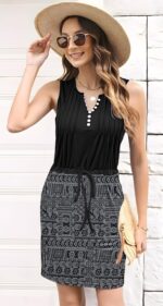 This drawstring waist dress is perfect for spring and summer.It features a v neck, button down, pleated, sleeveless, drawstring waist, elastic waist, two side pockets, above knee length, simple and classy cute dress, fit any body shape. comes in multiple color styles and sizes to fit all body types, which make you more beautiful and charming. It’s perfect for any occasion!