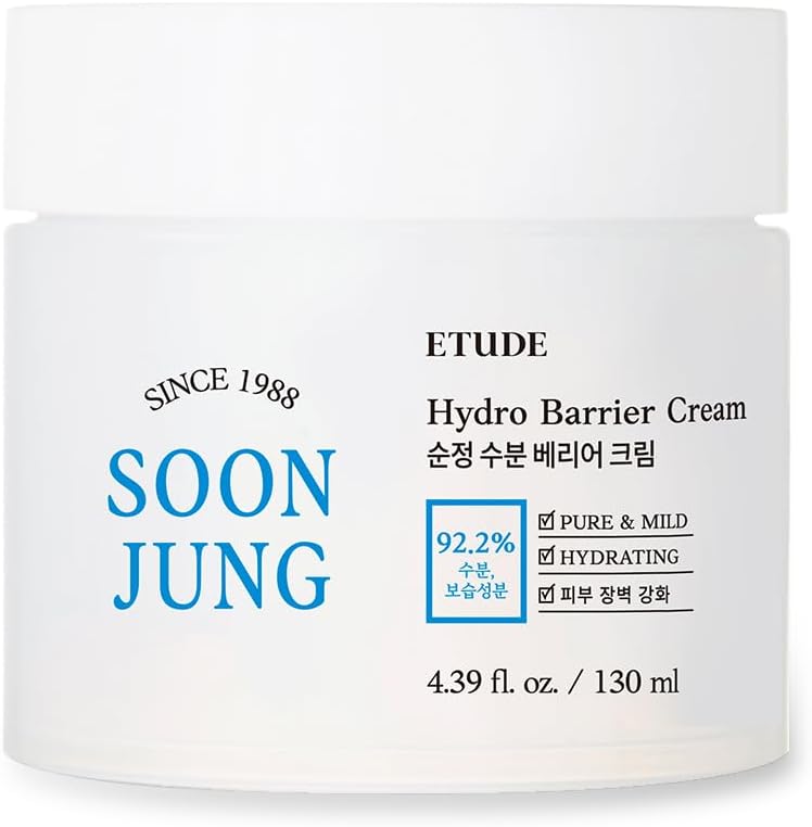 ETUDE Soonjung Hydro Barrier Cream Big Size, Face Moisturizer for Sensitive Skin, Moisturizing and Soothing Cream, 92.2% Hydrating Ingredients, Low pH Level 5.5, Korean Skin Care, Beauty (4.39 Fl Oz)