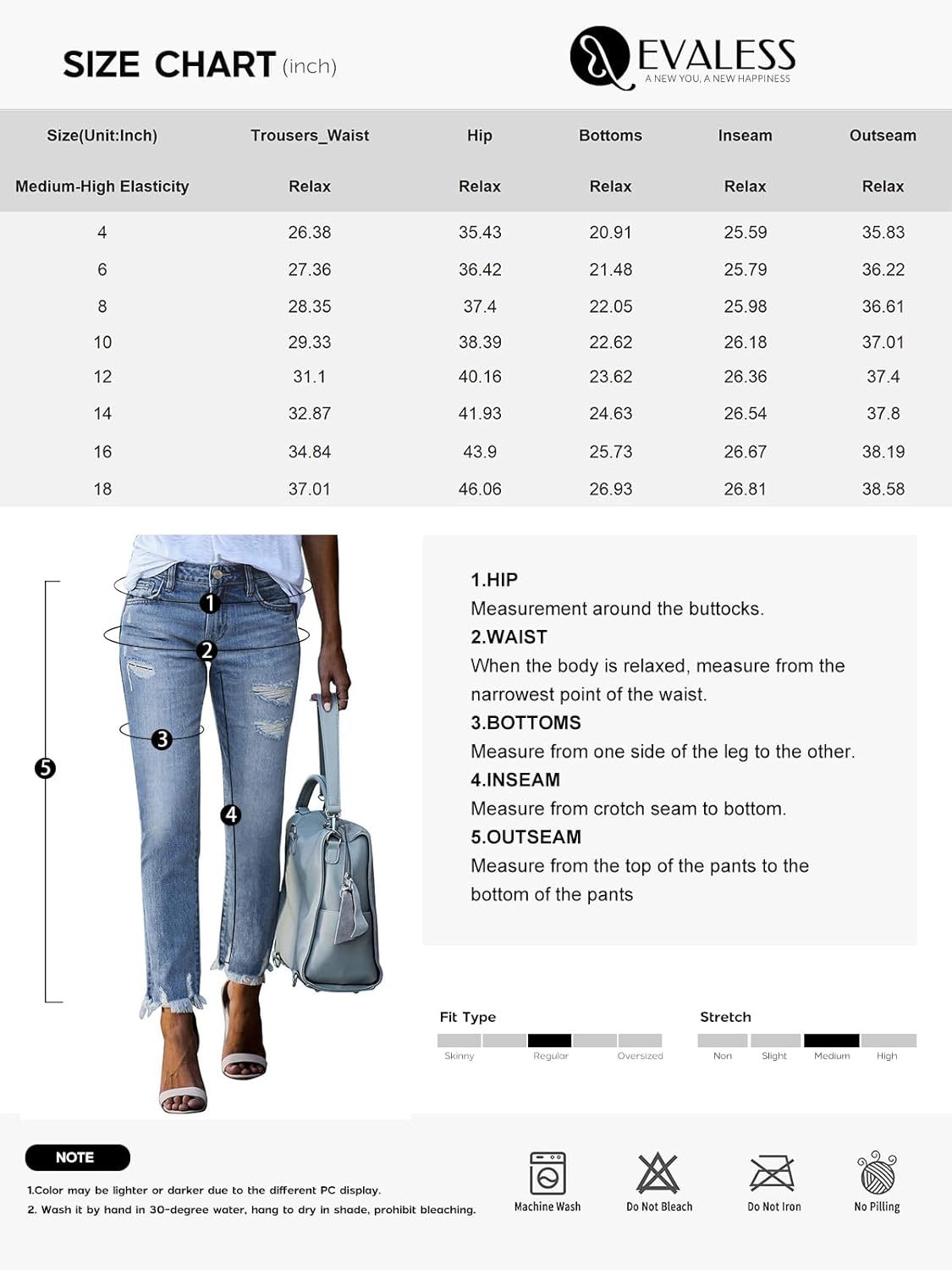 EVALSS Women Classic Ripped Straight Leg Skinny Jeans Mid Rise Denim Pants