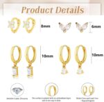 Home Jewelry & Fashion Accessories Earrings FASHGOOD 4 Pairs 14k Gold Plated Hoop Earrings for Women,Dainty Small Earring Sets for Multiple Piercing,Hypoallergenic Hoop Stud Earring Stack,CZ Pendants Huggie Hoops Earings Set