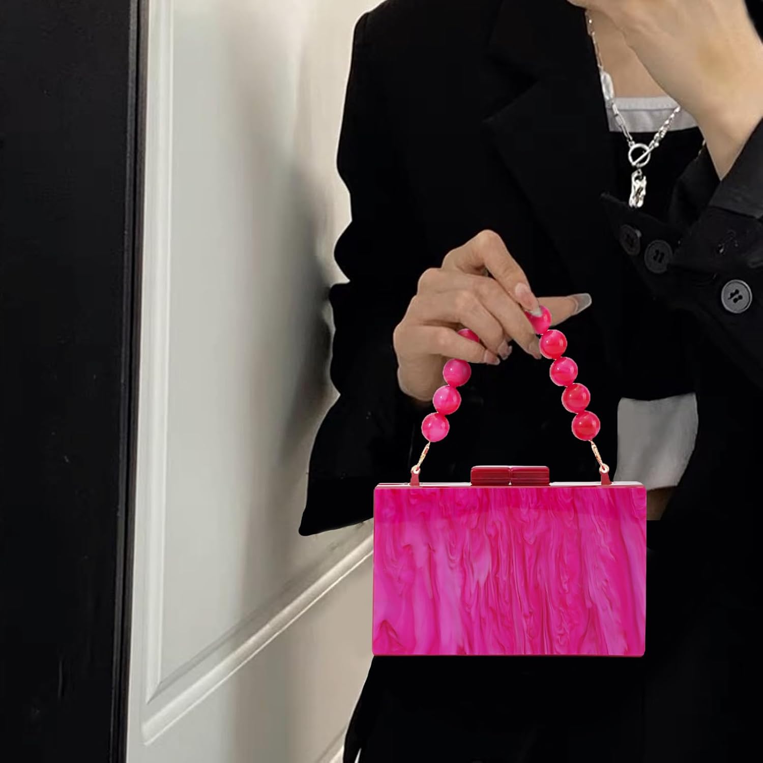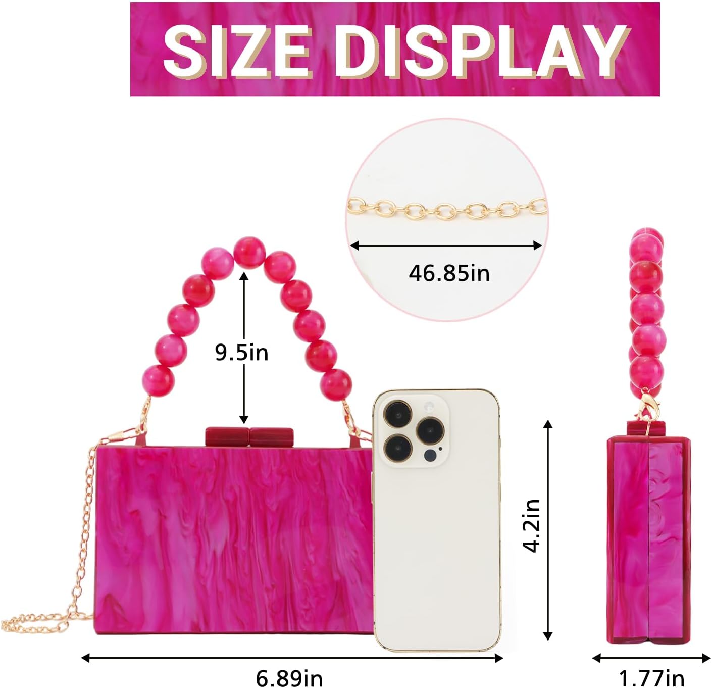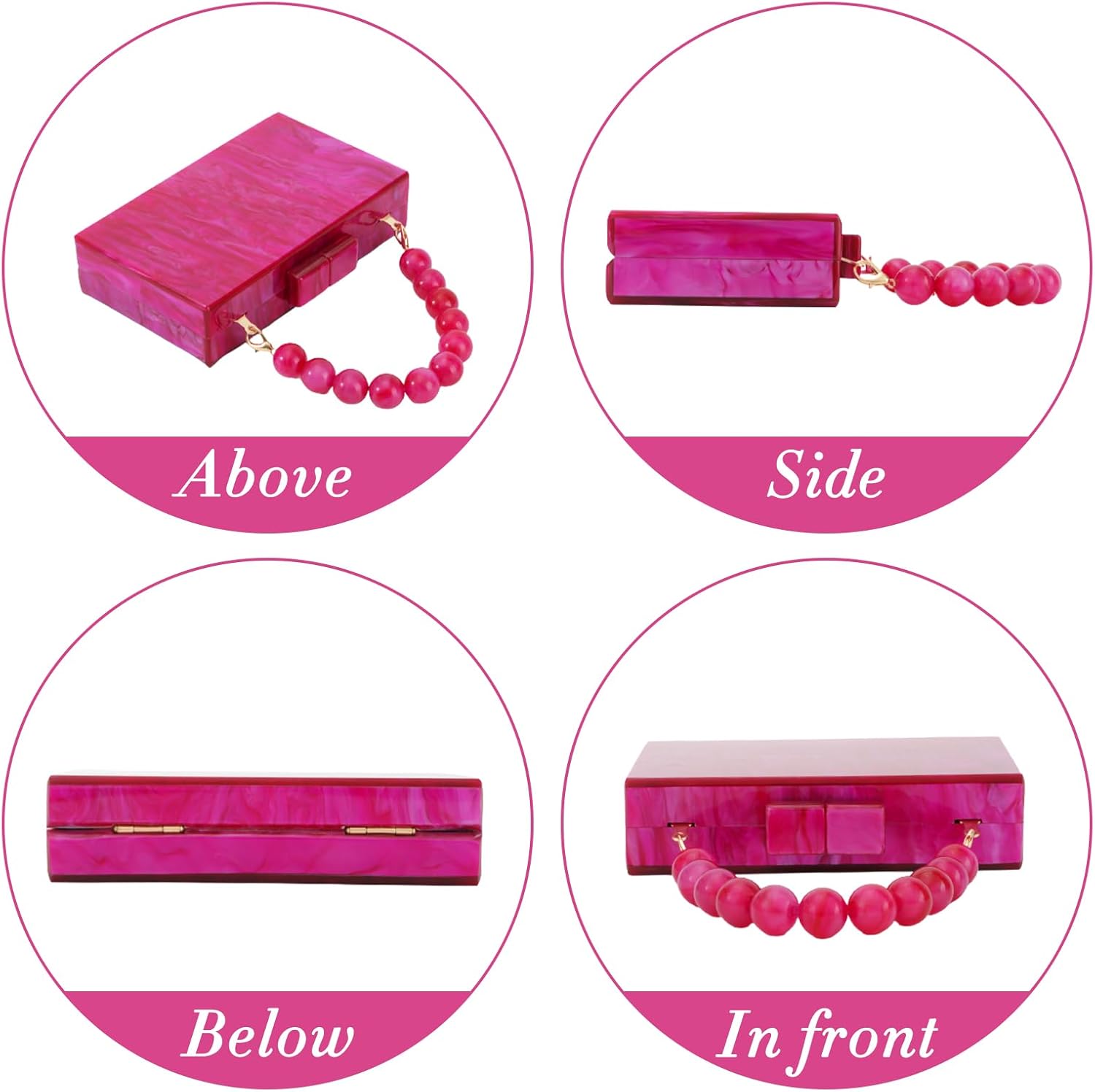 Fecialy Women Acrylic Clutch Purse Beads Evening Handbag Marble Clutch Formal Party Bridal Wedding Crossbody Bag