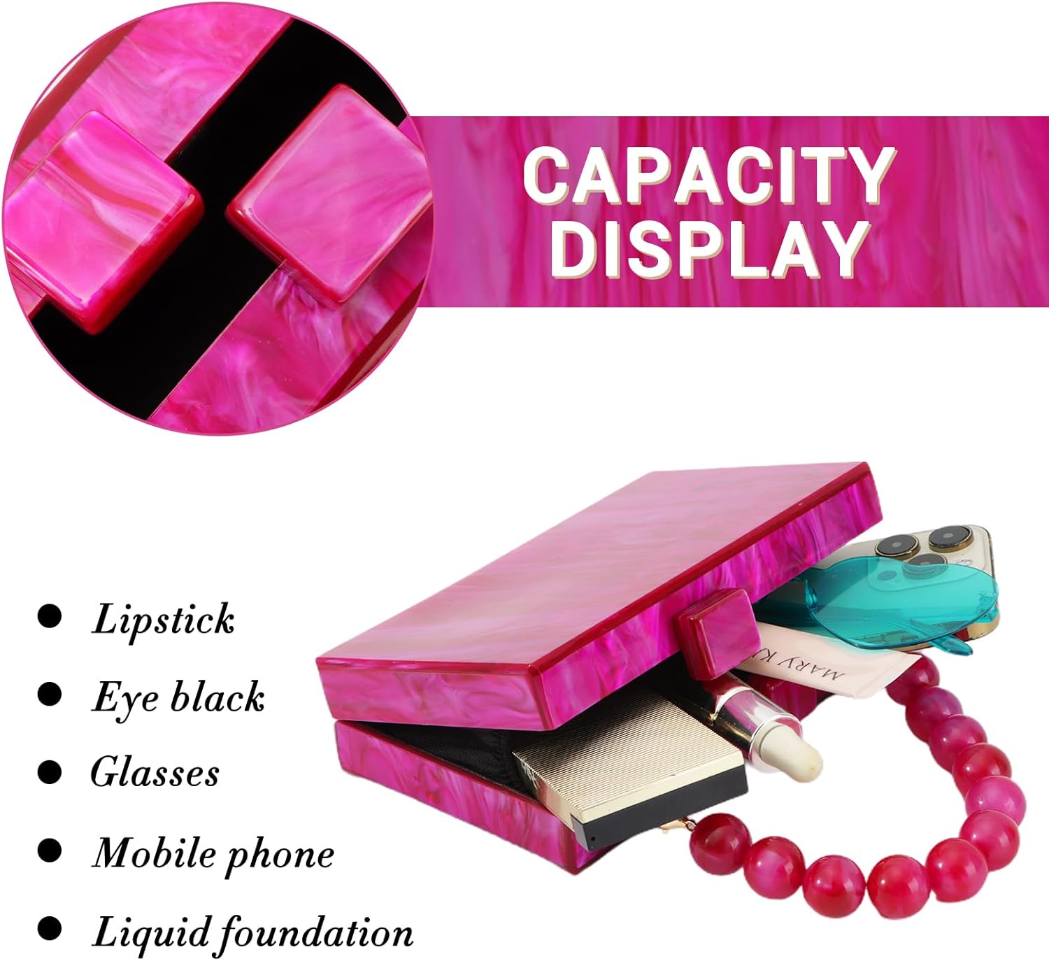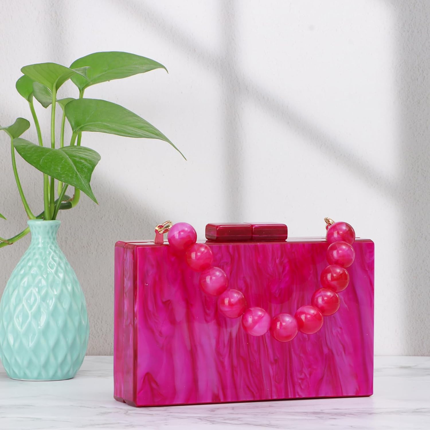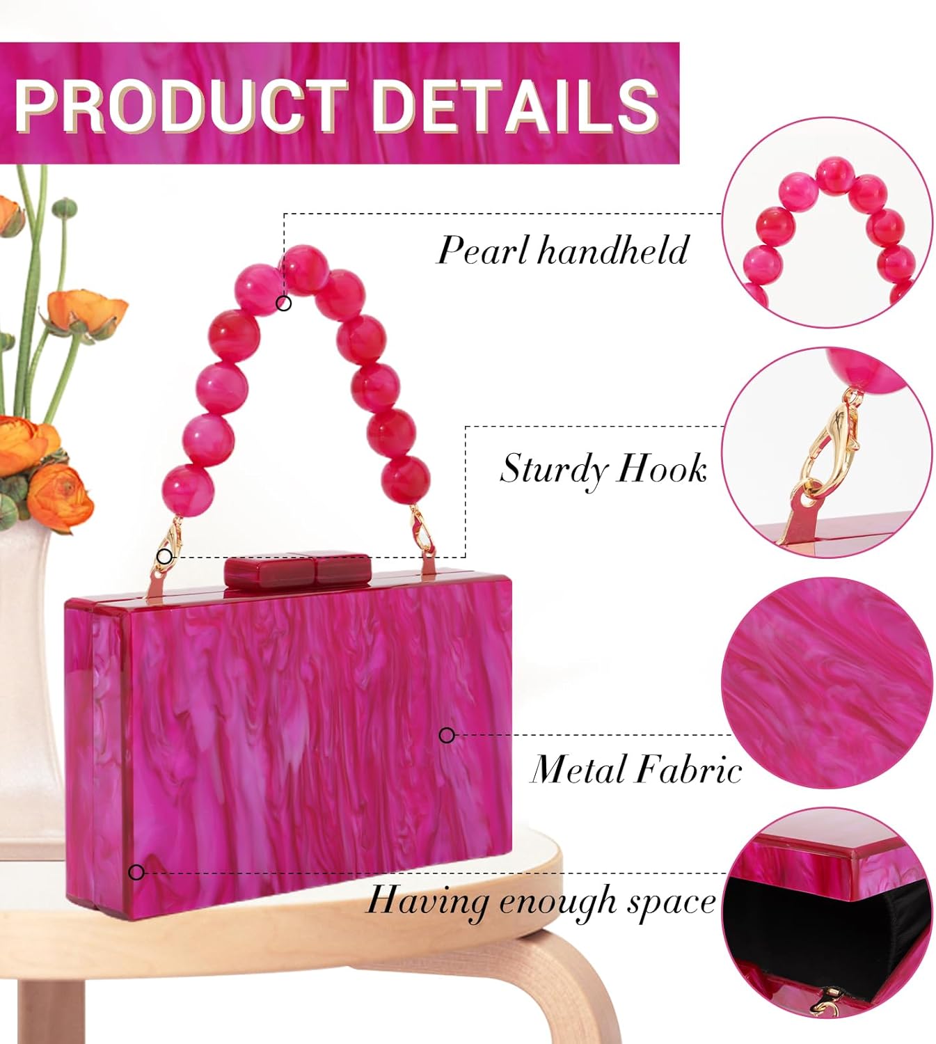 Fecialy Women Acrylic Clutch Purse Beads Evening Handbag Marble Clutch Formal Party Bridal Wedding Crossbody Bag